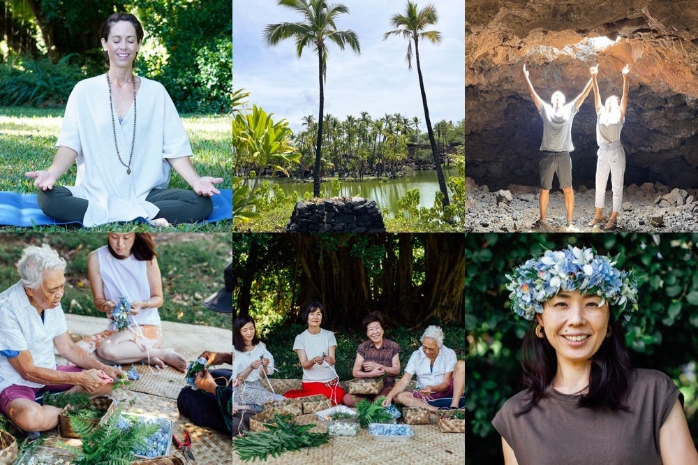 ヨガ講師としてカリフォルニア州サンタバーバラの「White Lotus Foundation」から認定を受け、身体をより快適に保つための呼吸法・瞑想始動の活動を続ける「ジェーミー氏/Jamie Eversweet Belmarez“とともに行うヨガクラスと、ハワイ島クム・ハク・レイの伝達者であり、ハワイ歴史の保存者とも呼ばれる「アンティマイレ氏/Auntie Maile」から直接指導を受けたユキコによる「レイ=ハクレイ作り」を楽しむコラボ企画が登場!2日間のプログラムでは、知る人ぞ知る世界三大スポットと言われるオーラの洞窟へもお連れします。ビックアイランド・ハワイだからこそ体験できる自然や文化に触れて見ませんか。