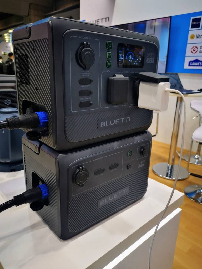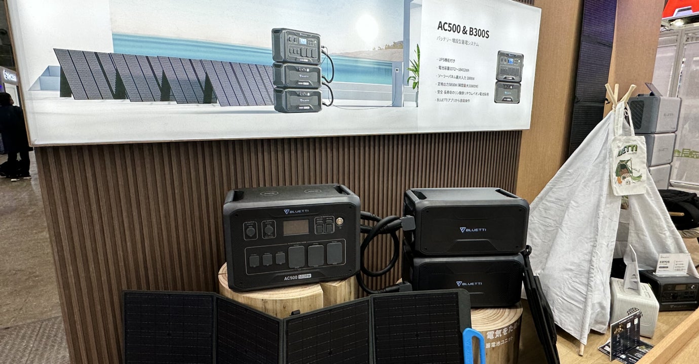ポータブル電源で知られる「BLUETTI(ブルーティ)」もその一社で、展示会のブースでは手持ちできる小さなモデルから、業務用の抱えて持ち運ぶモデルまで揃えていた。