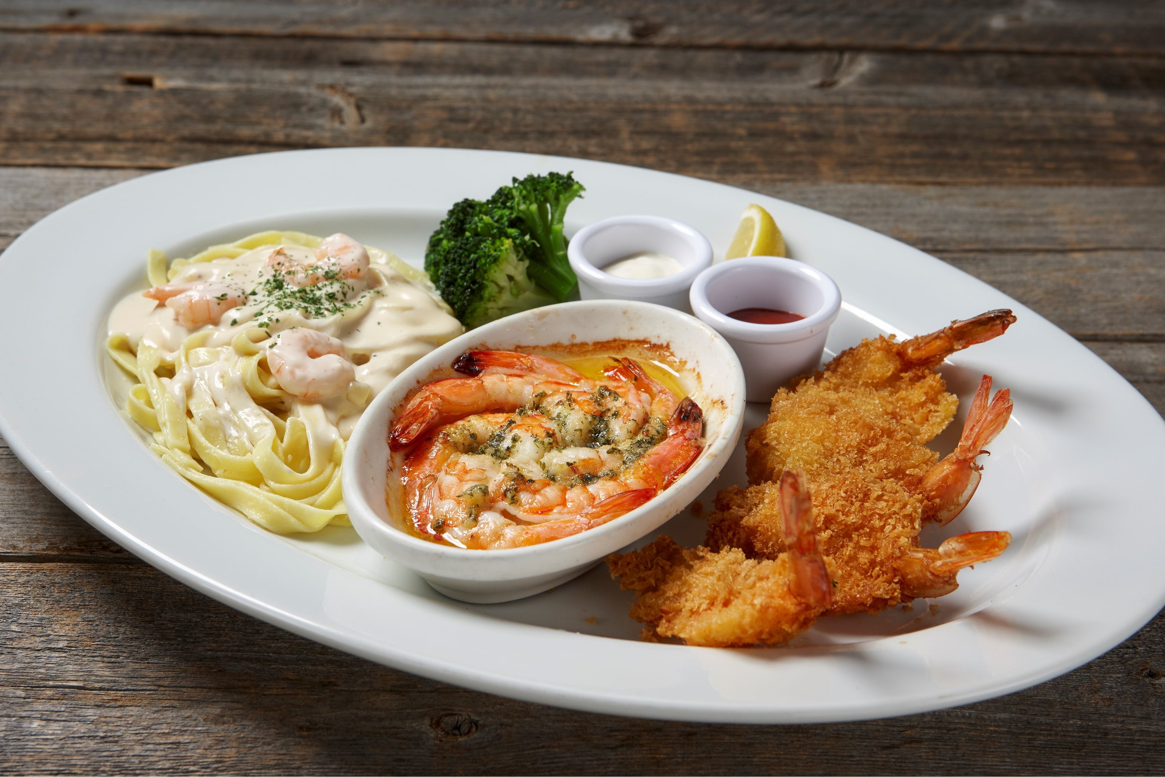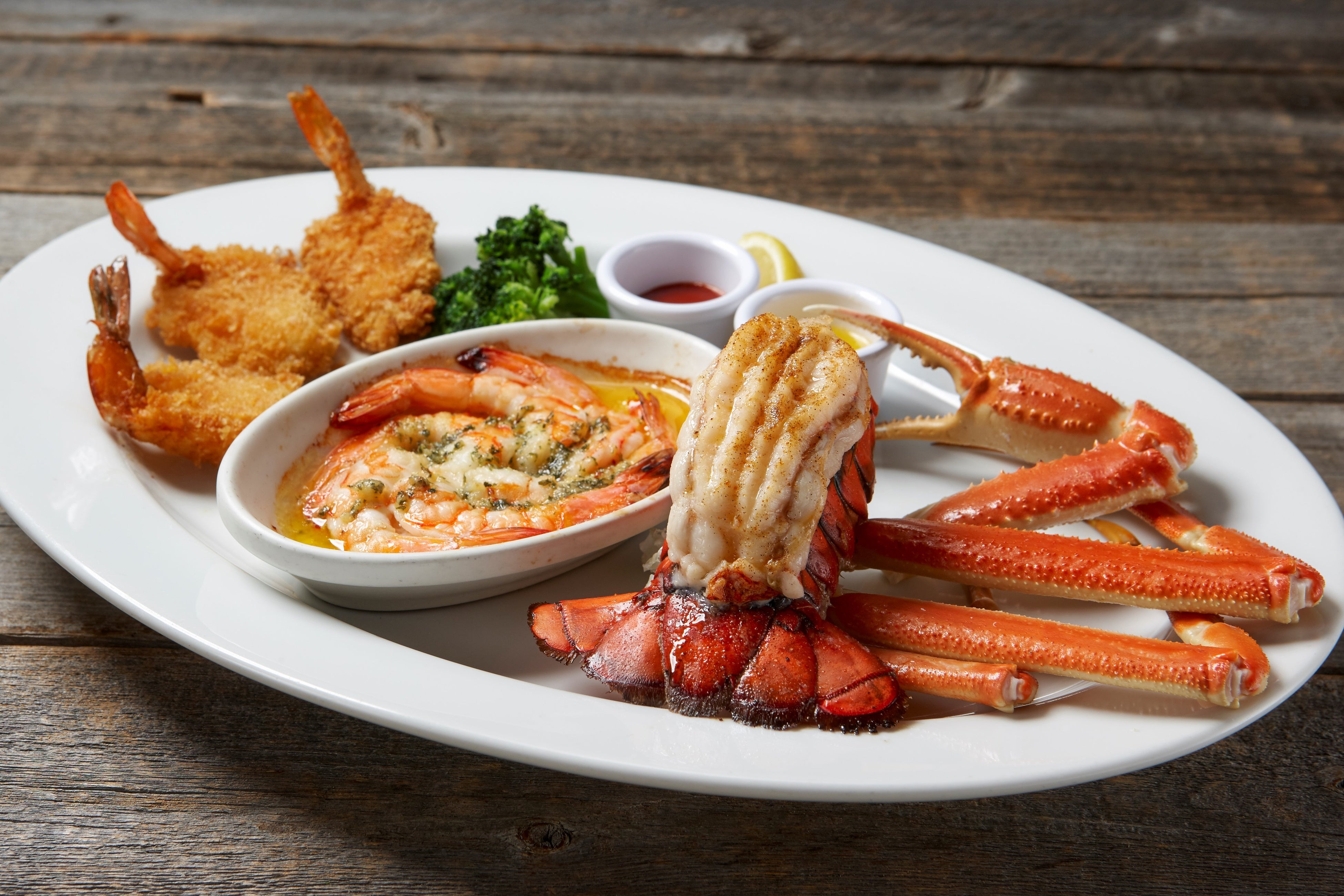 ロブスター・カニ・シュリンプが一度に楽しめる贅沢なワンプレート。アメリカのレッドロブスターで人気のメニューを再現いたしました。