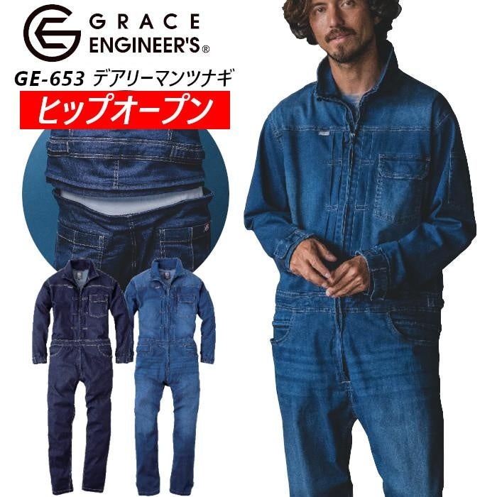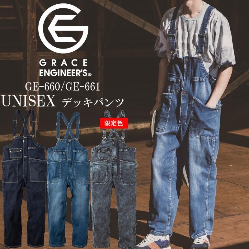 - ストレッチも効いて気安さ抜群のレディースデニムつなぎ