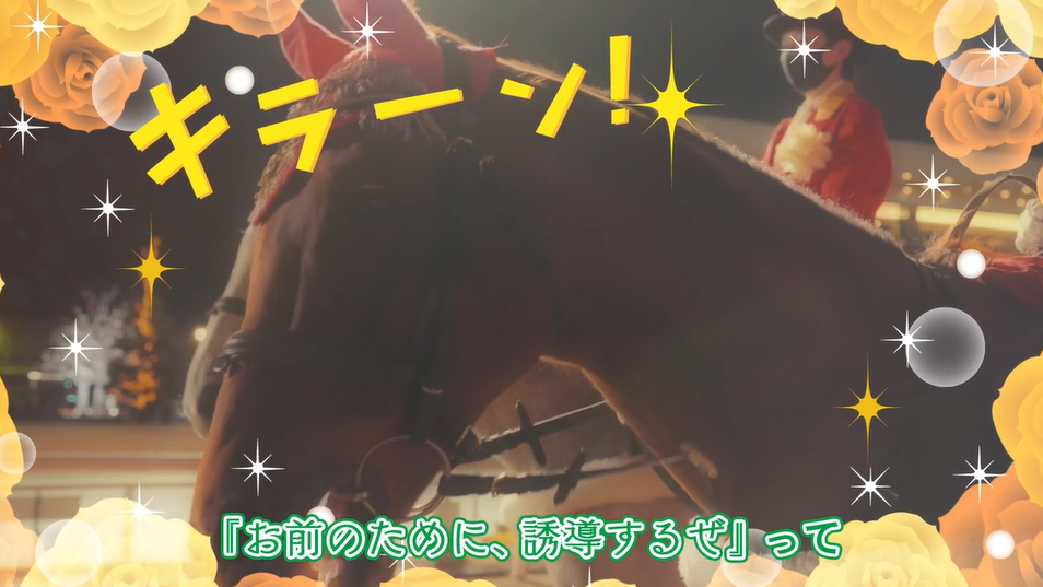 誘導の練習中に、2023年初のトゥインクル重賞「京浜盃」について語るナイキスターゲイザ・クリールマグナム・トロヴァオ。南関東三冠レースの行方を占う重要なステップレースであることを意識して、誘導の心構えを問う先輩ナイキスターゲイザに対し、イケボでのおふざけを行うクリールマグナムとトロヴァオの後輩コンビ。マジメなナイキスターゲイザは2頭のおふざけを真に受けてしまったようで…。クリールマグナムとトロヴァオの運命はいかに…!?