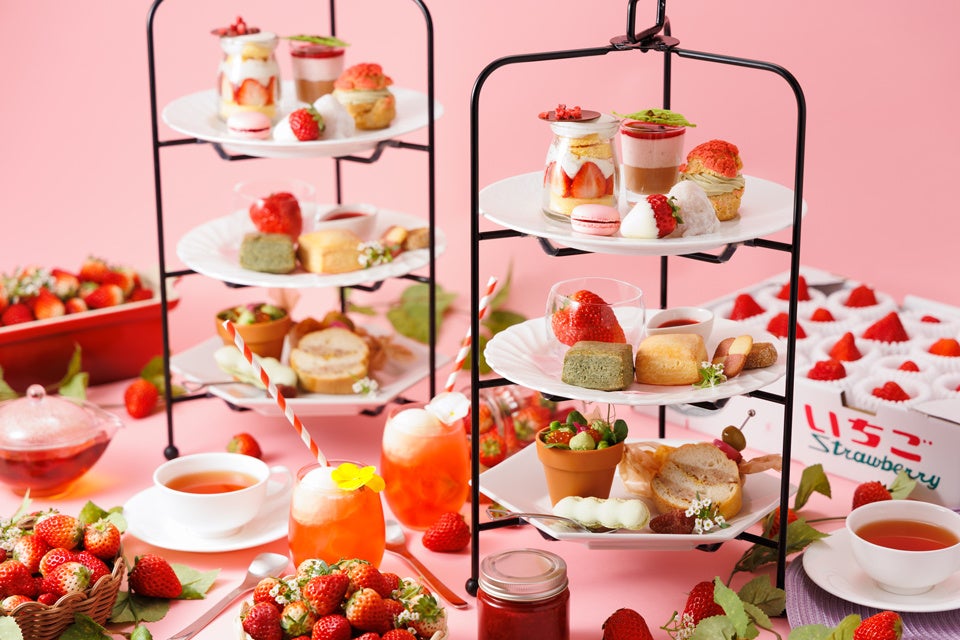 3段のティースタンドをお1人さまからも楽しめるとご好評いただいているアフタヌーンティー。今回は旬の「いちご」をテーマに、地元食材である大阪産(もん)いちご“紅ほっぺ”をふんだんに使ったアフタヌーンティーをご用意いたします。
