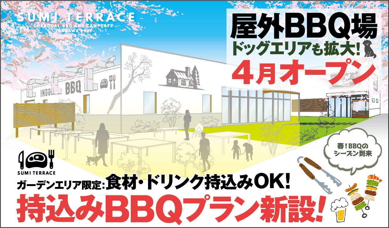 - 全天候型インドアBBQ場として人気を博している「スミテラス」が、この度「春のBBQ」シーズン到来に向けて、屋外BBQ場をオープン!
