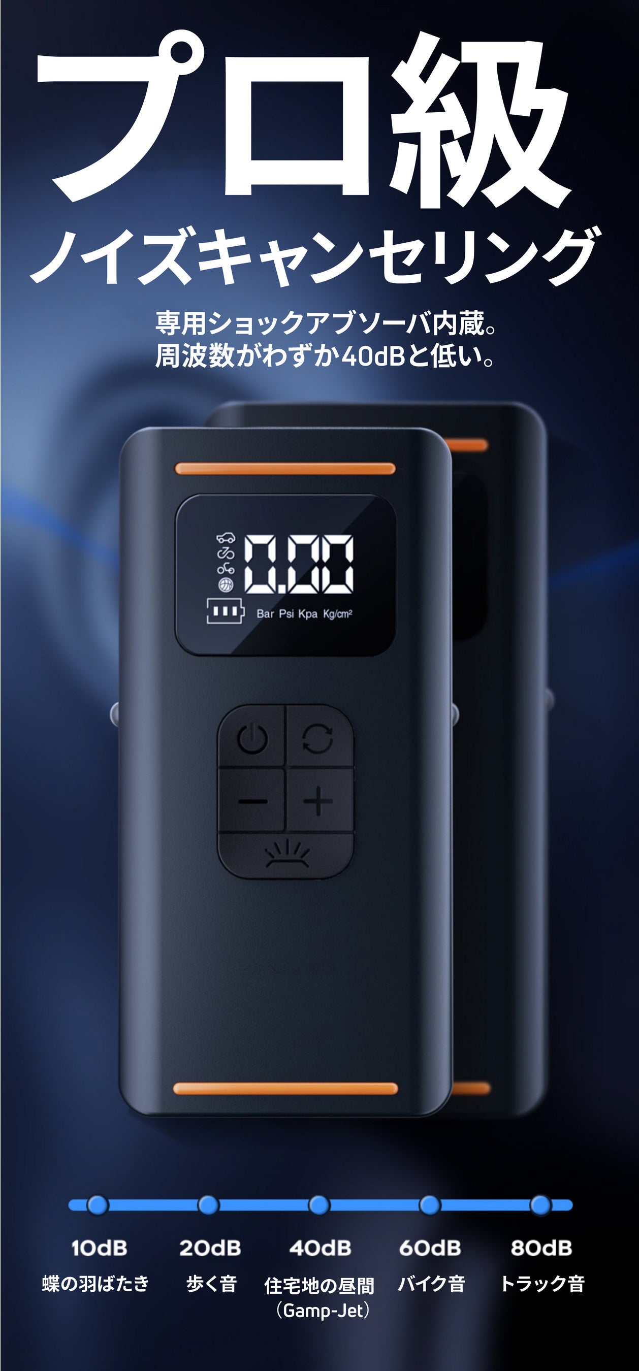 周波数がわずか40dBで、バイクや自動車の音よりも静かです。