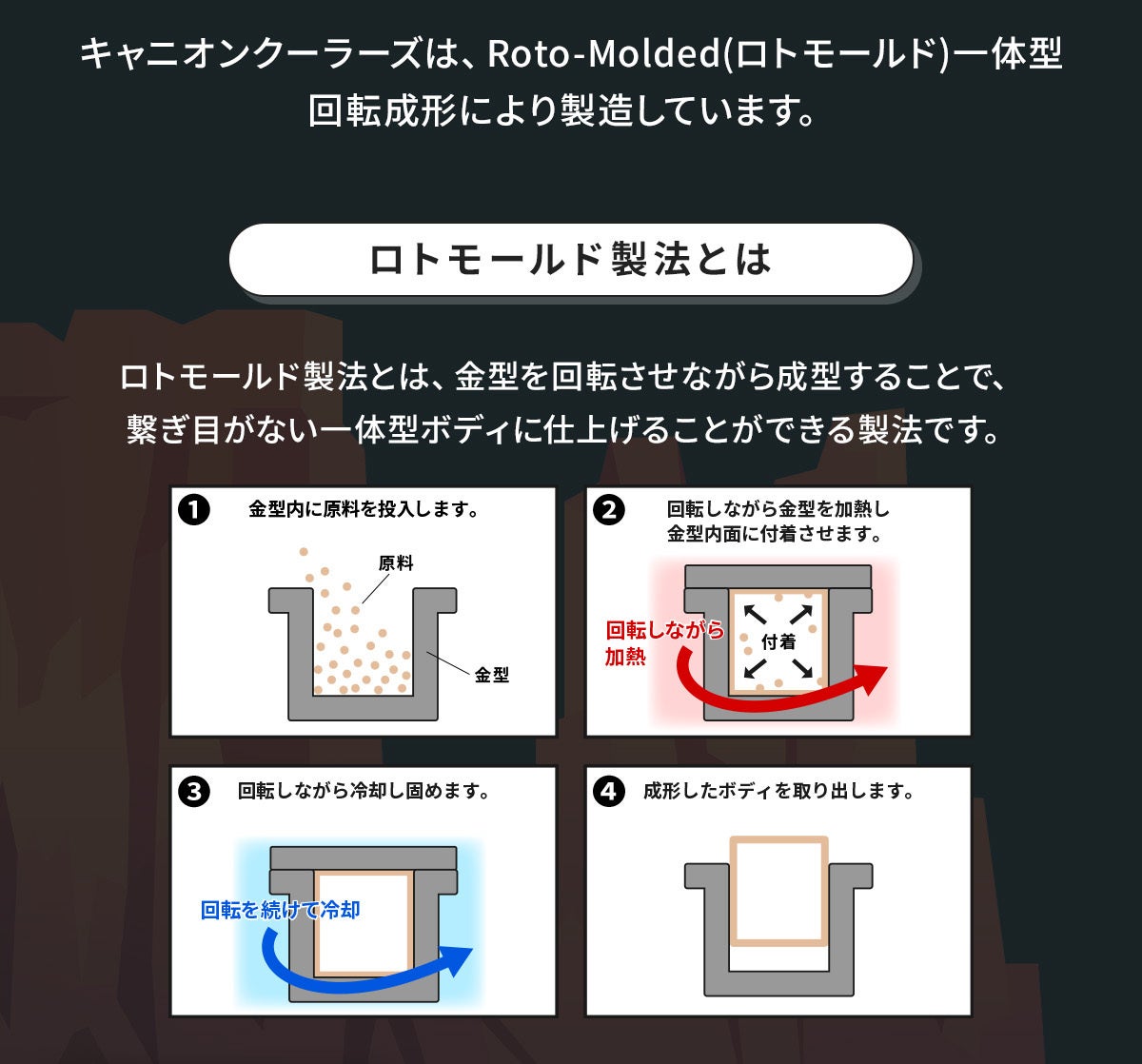 「キャニオンクーラーズ」はUV耐性ポリエチレン構造で、激流を下るカヤックなどにも採用される繫ぎ目のない一体化ボディのRoto-Molded(ロトモールド)製法を採用。