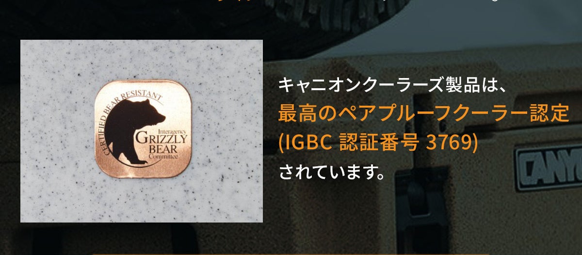 ■ついに日本上陸「キャニオンクーラーズ」~ベアプルーフクーラー認定でその耐久性が米政府機関のIGBC(グリズリー・ベア委員会)に保証された唯一無二のクーラーボックス~