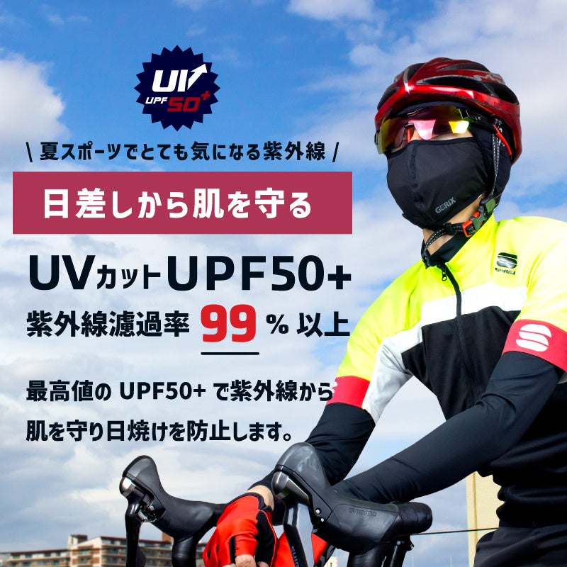 UVカットUPF50+で自転車などの長時間外で活動する時の紫外線による日焼け対策に。