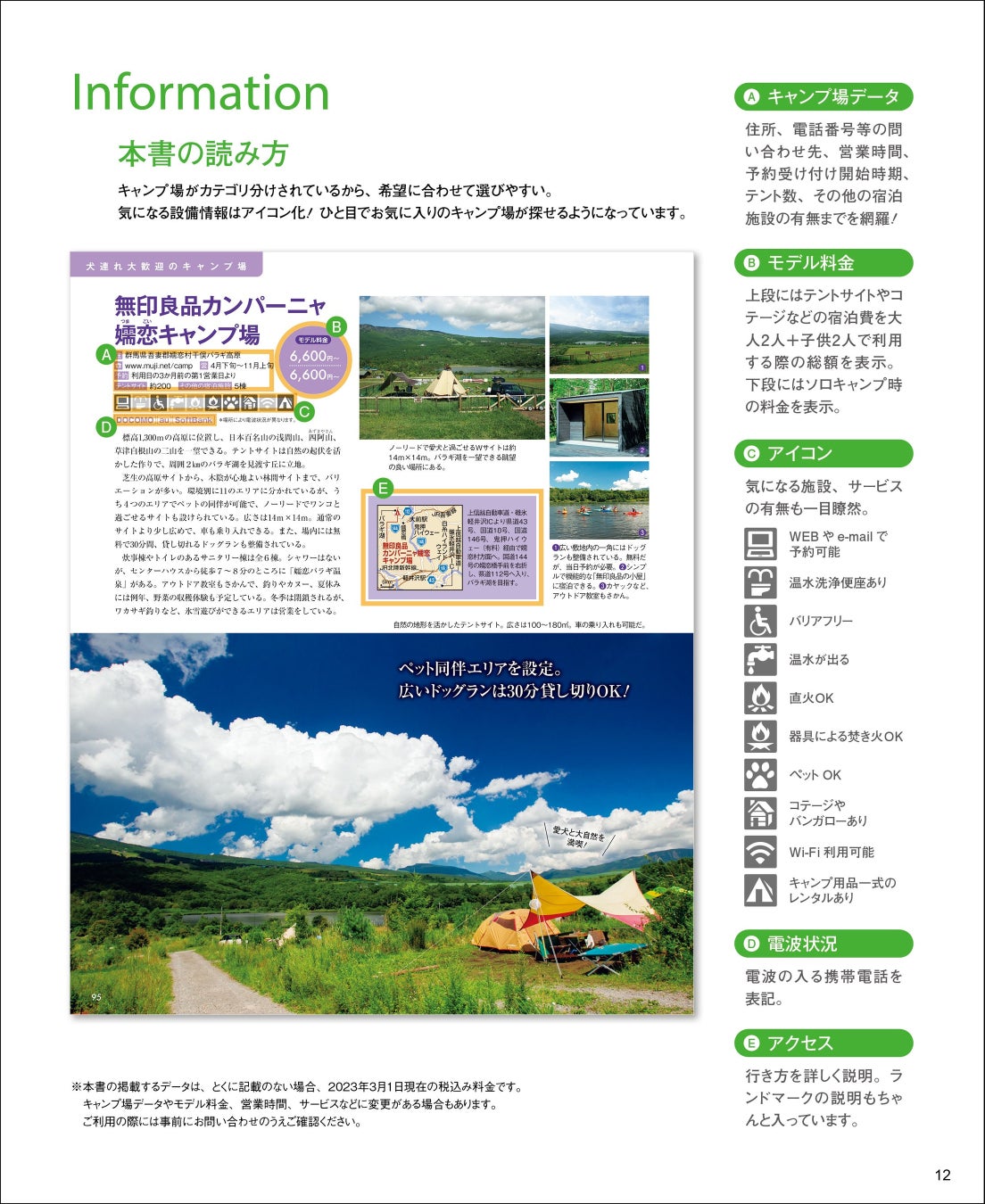 「キャンプに行きたいけど、どのキャンプ場に行けばいいかわからない」「ペットのワンちゃんを一緒に連れてキャンプに行きたい」「キャンプだけではなく温泉も楽しみたい!」・・・・・・。キャンプに行きたいみなさんの目的は様々ですが、本書は下記の10カテゴリに分けてキャンプ場を案内しています。