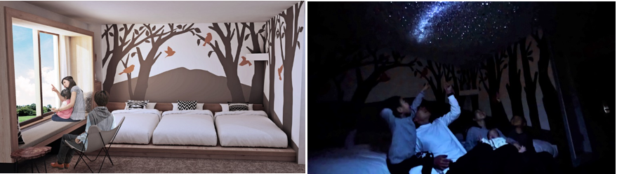 また、日が落ちたあと、お食事からお部屋に戻ると、天井には満点の星空が。眠りにつく直前までワクワク、興奮を冷めさせず、大自然ならではの贅沢な1日を過ごせます。