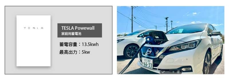 ※TESLA Powerwall:太陽光発電や電力会社の電力網からの電気を蓄えることができる家庭用電池です。蓄電した電気は、夜間や停電時などいつでも利用できます。