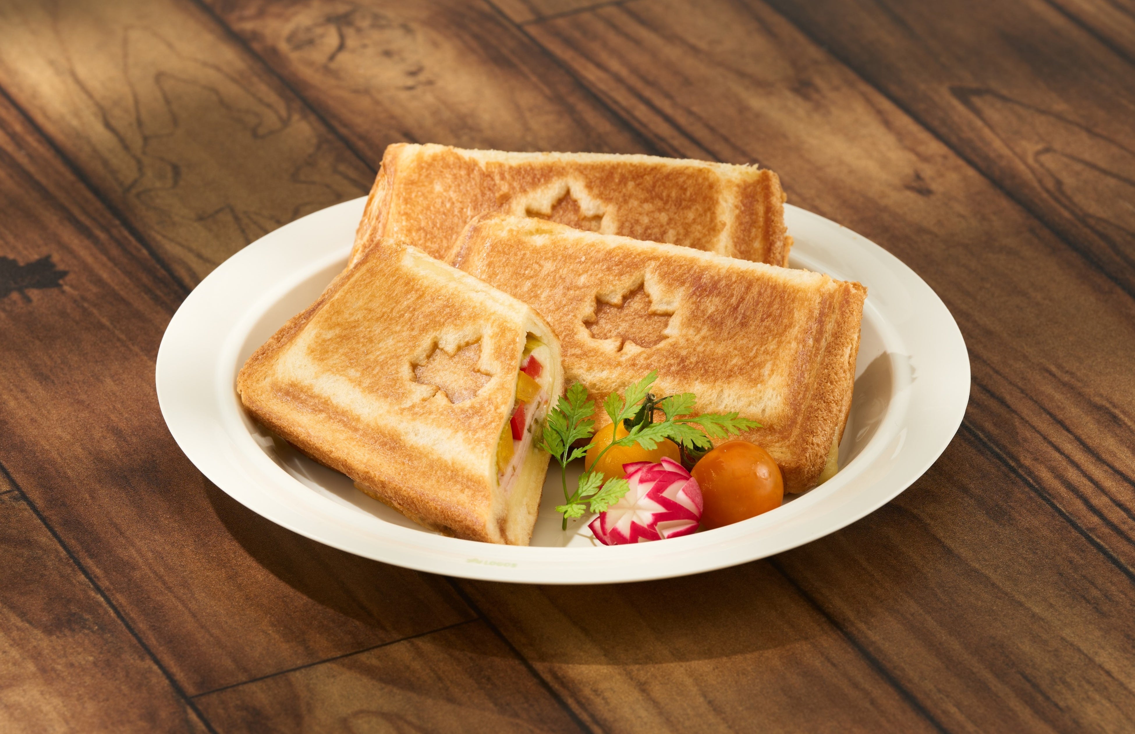 1枚の食パンに好きな具材をはさんで火にかけるとホットサンドが作れる。ハーフサイズだから女性やお子様にもおすすめ。