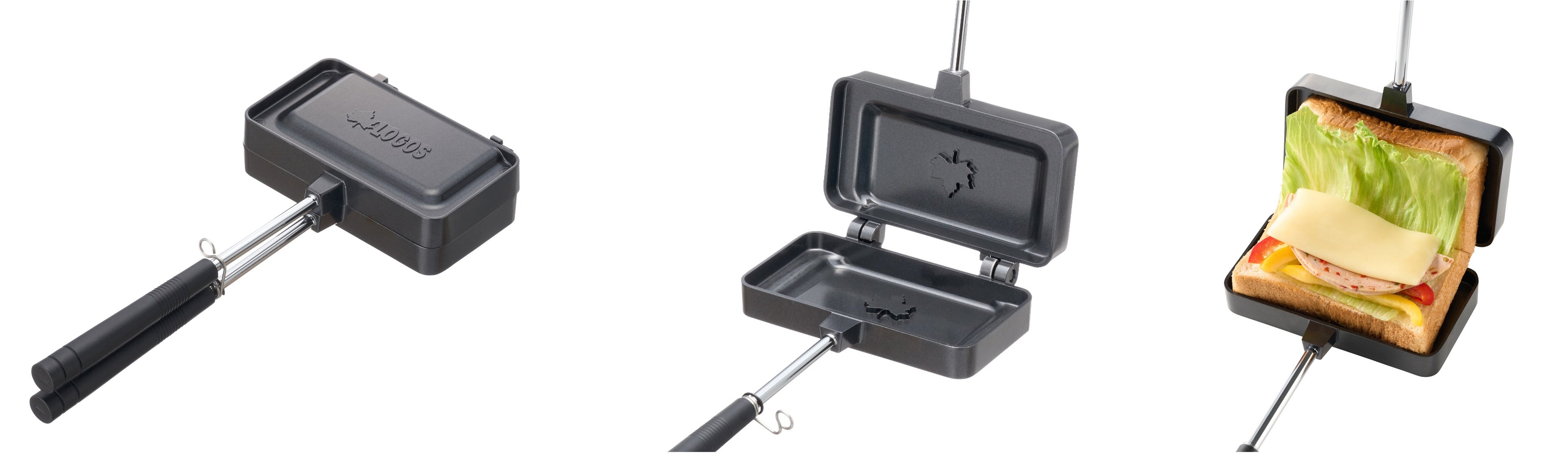 女性やお子様にもおすすめの食べきりやすいホットサンドがつくれるサイズで、ガスコンロやたき火での調理に対応するので、ソロキャンプやひとり暮らしの食卓でも活躍します。