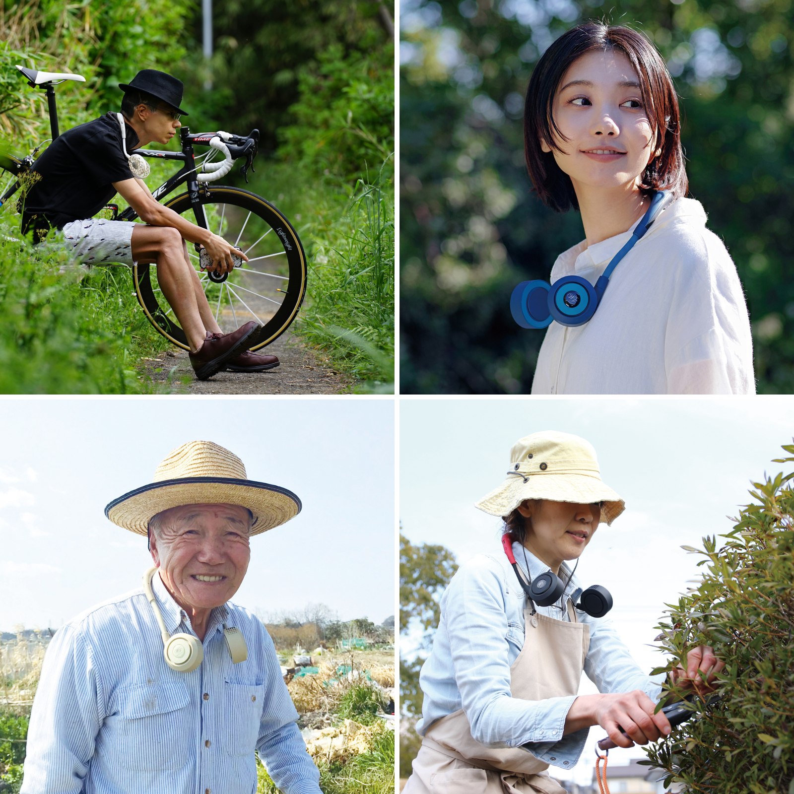 「ダブルファン」は置き型の扇風機のようなパワフルな風と、ハンディ扇風機のような携帯性を兼ね備えた首掛け扇風機です。首掛けタイプで両手が自由に使えるので、好きなこと、やりたいことに夢中なれると「いつでもどんなシーンでも使える扇風機」として人気を博しています。また、フル充電で最大約10時間連続使用ができます。さらに5段階の風量で自分好みの風を選択でき、誰もが安心して使えるように、安全性の高いニッケル水素電池を採用。高級感のあるデザインと豊富なカラーなどで幅広い層からご支持をいただいております。