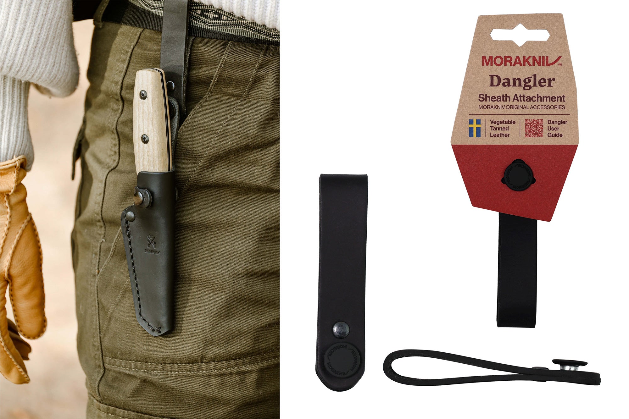 ナイフのシースとベルトの間の距離を延長することができるアクセサリー。ベルトとナイフの距離が長くなることで、ナイフの出し入れがスムーズになる他、しゃがんだり、膝を曲げたりした際も、安全にナイフを取り出せます。シースとの接続はボタン式で、脱着も簡単です。フィン ブラックブレード (S)、ウィット ブラックブレード (S)、ルーク ブラックブレード (S)および、他のモーラナイフの一部のナイフシリーズに対応します。