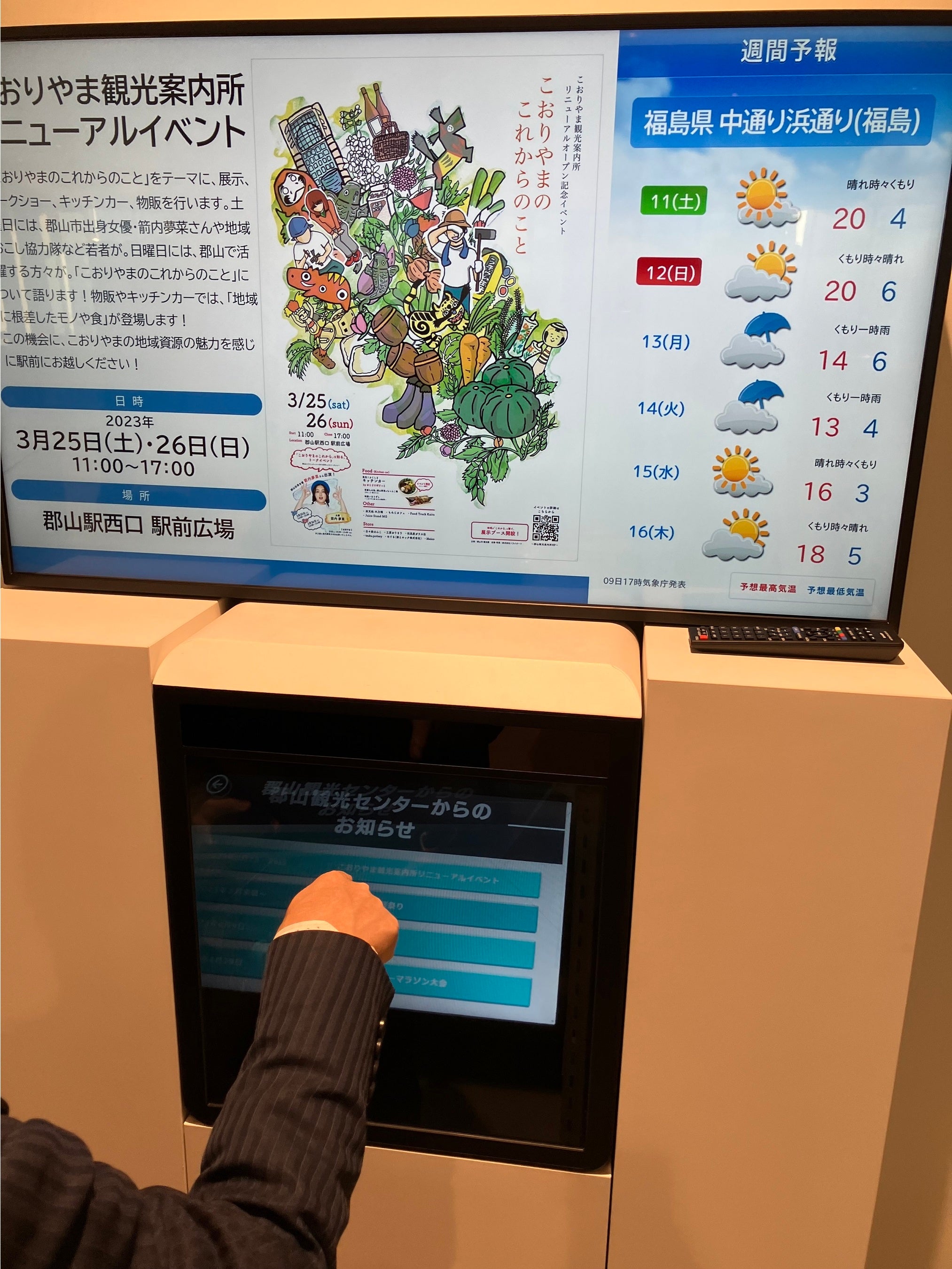 郡山市は、“東北のヒト・コト・モノを紡ぐワクワクする観光拠点づくり”をテーマに、観光振興に注力しており、その一環で観光案内所の整備を行っています。観光案内所の営業時間外の情報提供や職員の負担軽減、観光客等の市内での行動支援や多様化するニーズへの対応など、さまざまな課題解決に取り組んでいます。