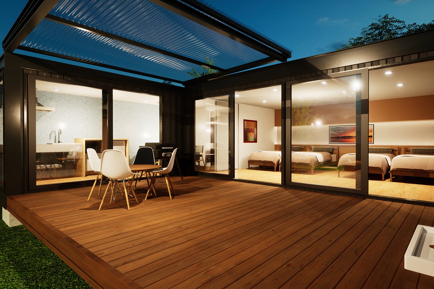 | デラックスキャビン | 1棟 | 2~6名 | セミダブルベッド4台 室内70㎡ 専用ガーデン |