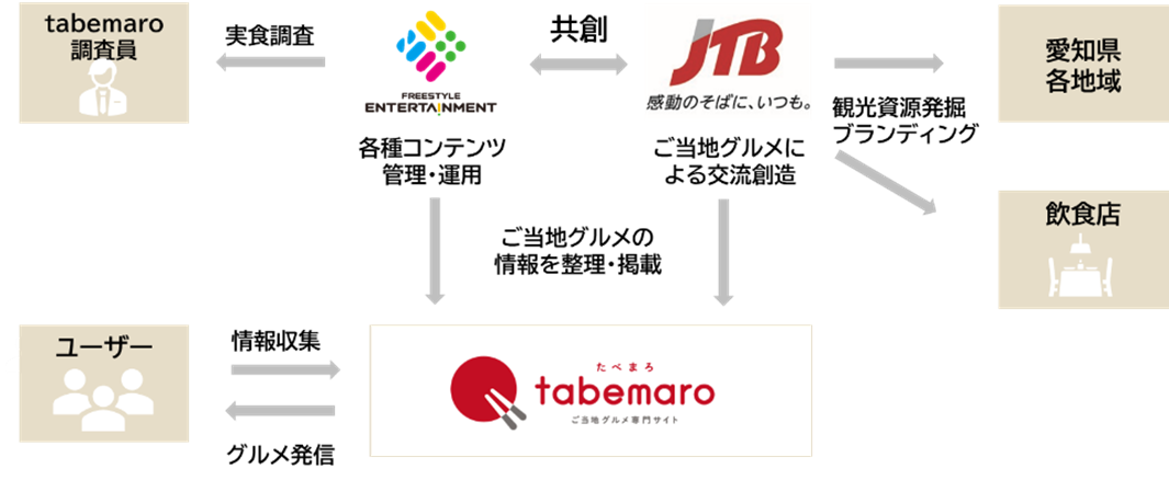株式会社JTB(以下「JTB」)は、株式会社フリースタイルエンターテイメント(以下「FSE」)と連携し、愛知県のご当地グルメ情報専門サイト「tabemaro」(たべまろ)を、2023年3月27日に開設します。JTBは、「tabemaro」を通じたFSEとの共創により、愛知県のご当地グルメ情報を整理し、ご当地グルメの魅力を発信することで、観光客を中心とした利用者と地域の飲食店をつなぎ、ブランド価値を高めるとともに、交流人口の拡大による地域活性化をめざします。