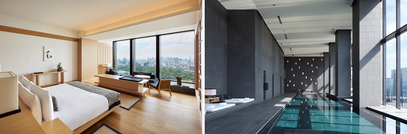 「アマン東京」は2014年12月22日にアマン初の都市型ホテルとして開業いたしました。高層複合ビル大手町タワーの最上階部33階から38階に、木と石と和紙による、日本の伝統文化と現代性を兼ね備えた広々とした静かな空間を提供しています。客室数84室、高い天井高を持つガーデンラウンジを始め、イタリアンレストラン、シガーラウンジを併設したバーラウンジ、1階別棟のカフェ、パティスリー、カウンター 8席の鮨店、そして8室のトリートメントスイート、30メートルの屋内プールやフィットネスジムを持つアマン・スパなどを擁し、そのどこからでも東京の眺望や自然をご堪能いただけます。