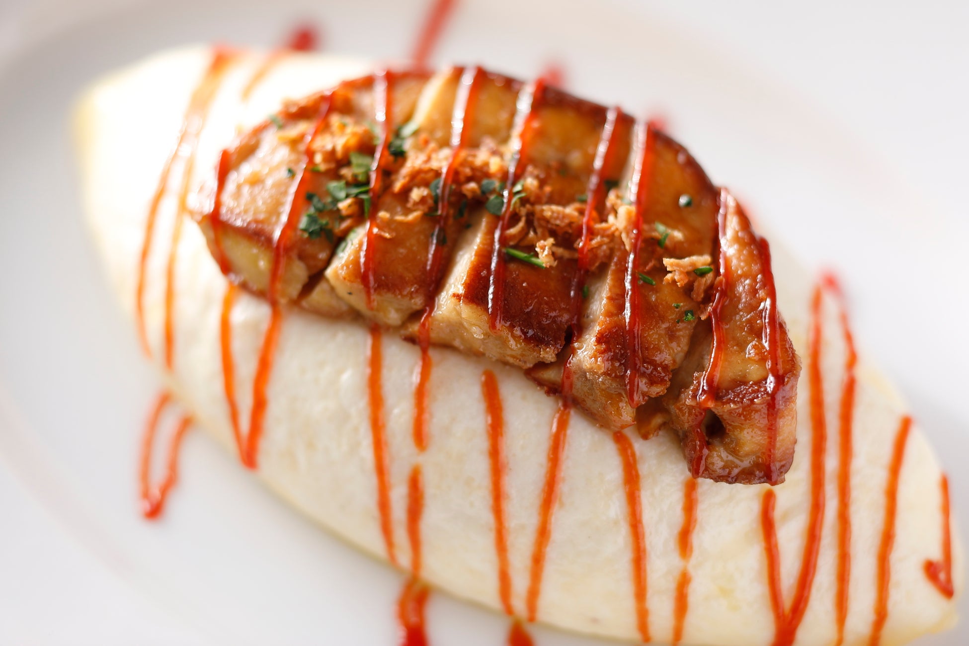 大人から子どもまで愛される洋食のシンボル「オムライス」。そのオムライスに高級食材「フォアグラ」を贅沢に添えたインパクト大な一皿がこちら。