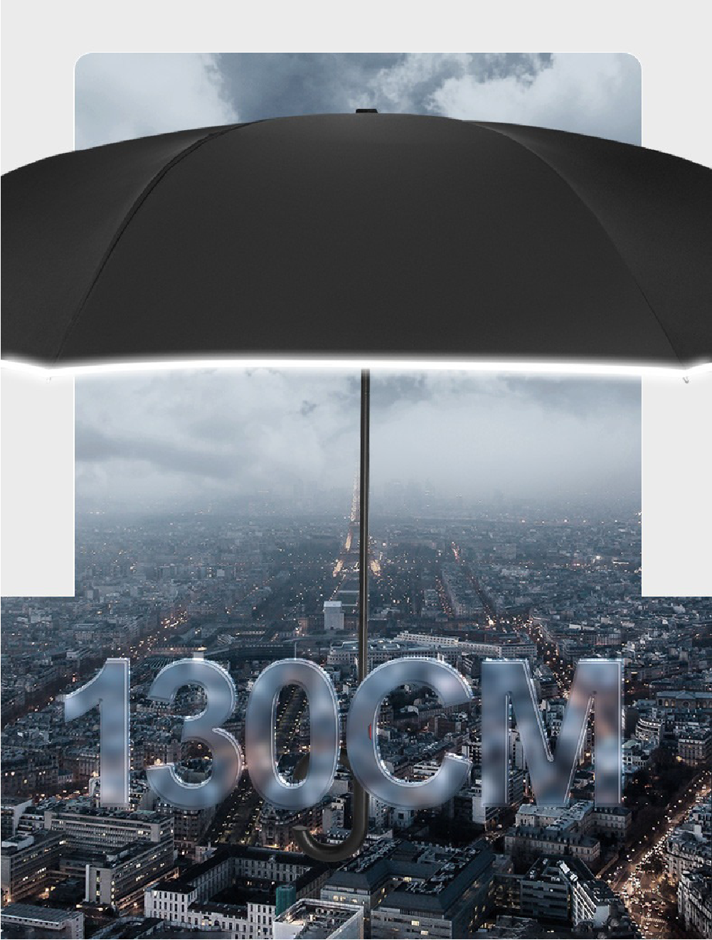 傘の縁には光に反射する素材を採用。