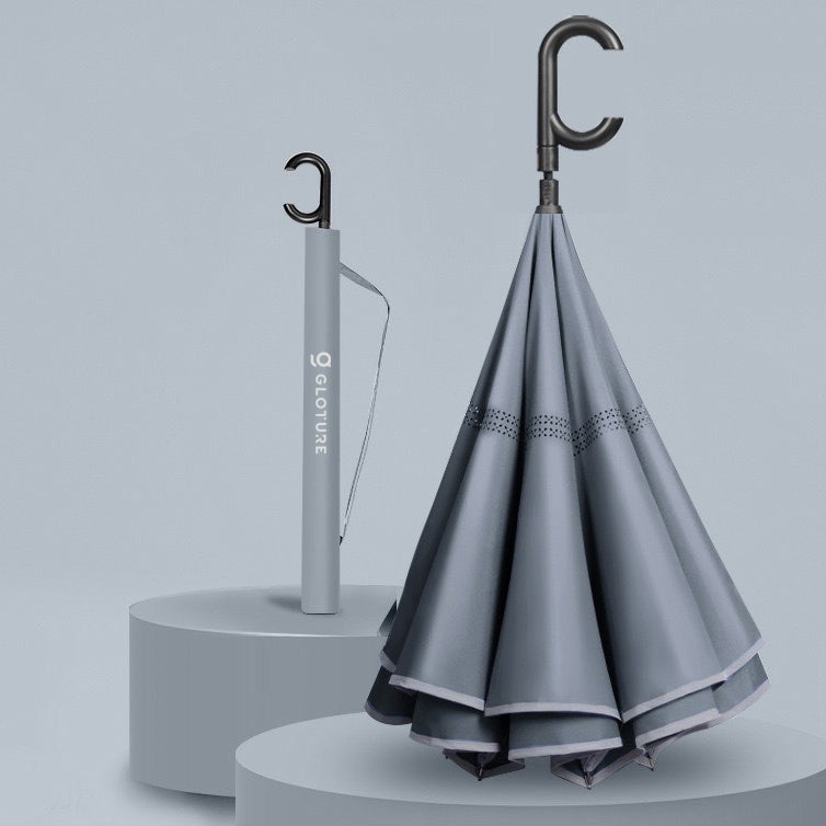 GeeBrella Ultraは従来の傘とは作りが異なり、逆さ傘になっています。