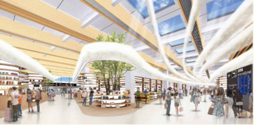 阿蘇くまもと空港の国内線と国際線のターミナルビル機能が一体化した、新旅客ターミナルビルが3月23日(木)に開業しました。デジタル技術の活用により、搭乗手続きの時間が短縮され、保安検査通過後の搭乗待合エリア内の店舗面積が従来の50倍の広さになるなど、利便性が大きく向上しました。
