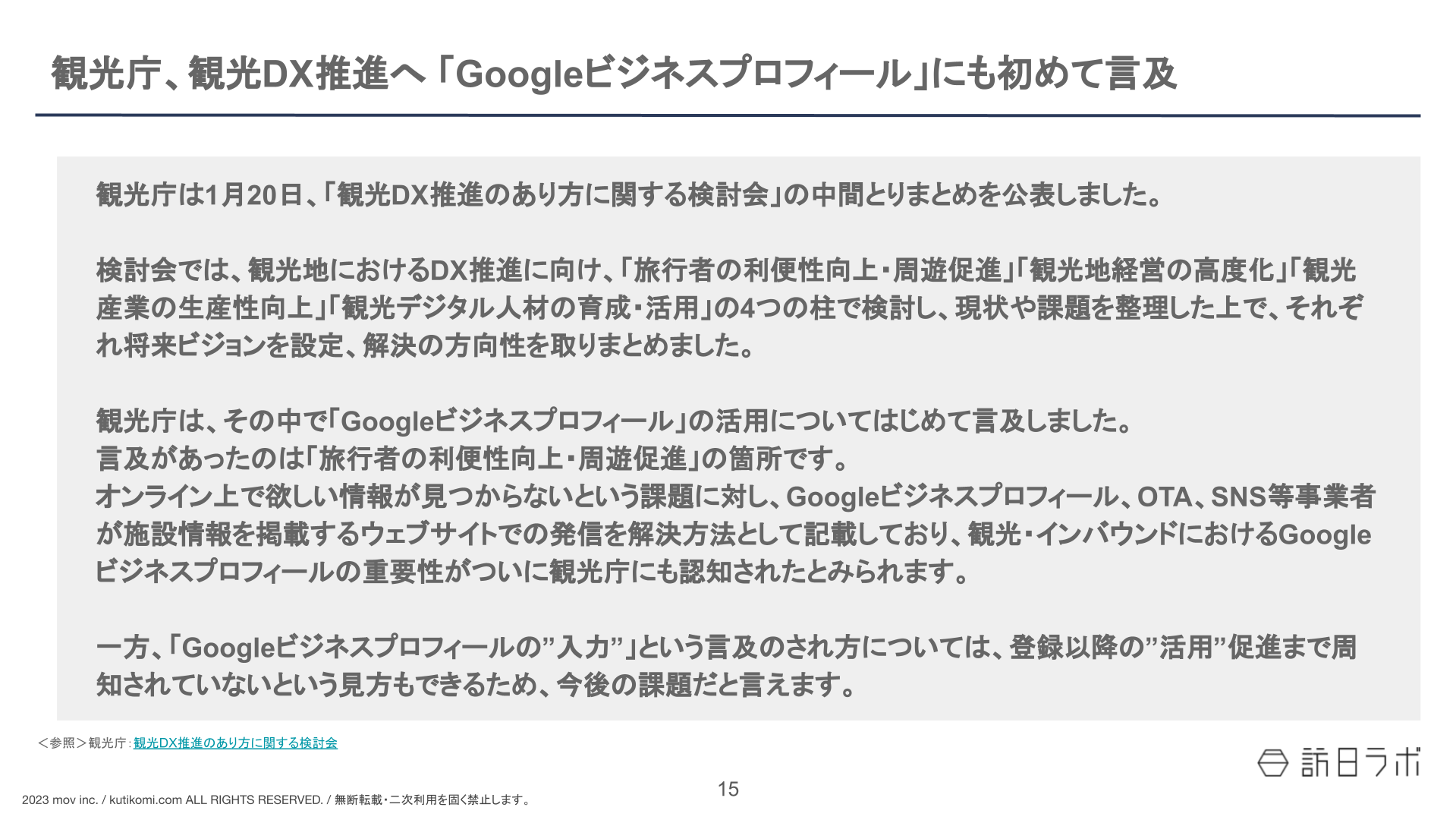 - 観光庁、観光DX推進へ 「Googleビジネスプロフィール」にも初めて言及