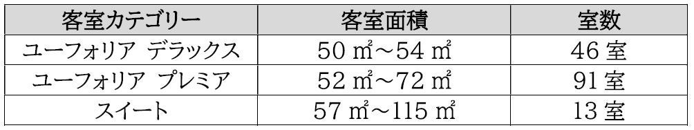 3つのカテゴリー、14タイプの豊富なバリエーションから構成される全150室の客室は、全室50㎡以上のゆとりのある広さとなっております。