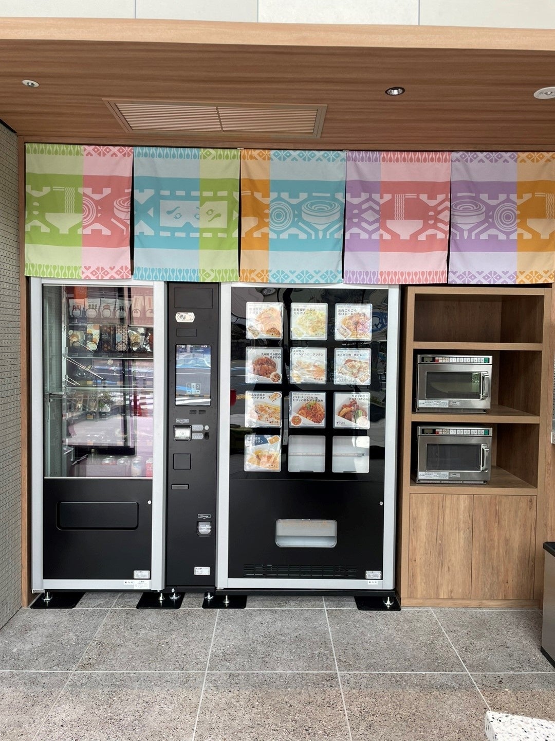 1階では「カクウチ&カフェ CROOM STAND」を運営し、地元福岡の食材を使用したオリジナルの冷凍食品を中心とした自動販売機や、オリジナルワインやビール・コーヒー等のドリンクサーバーを設置し、ご購入いただいたものを屋内飲食スペース・屋外テラスでそのままお召し上がりいただけます。