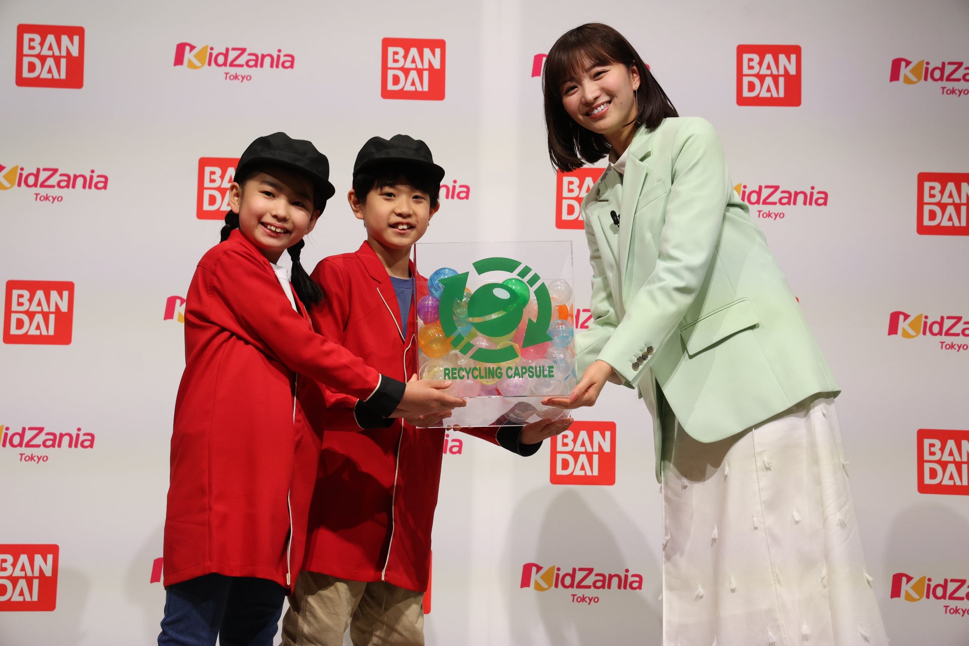 「お二人がガシャポンで遊ぶ時も、この2つの環境に配慮した取り組みを思い出してくださいね!というわけで、新しいカプセルやカプセルトイに生まれ変わるために回収されたカプセルを持ってきたので、お二人に渡したいと思います」と子どもたちにカプセルが入ったボックスを渡されました。「おもちゃ工場」パビリオンの楽しさをお二人からたくさんの人に伝えてもらえると期待しています!頑張ってくださいね!」と激励。子どもたちも「はい!一生懸命頑張ります!」と、これからの仕事体験が楽しみな様子でした。