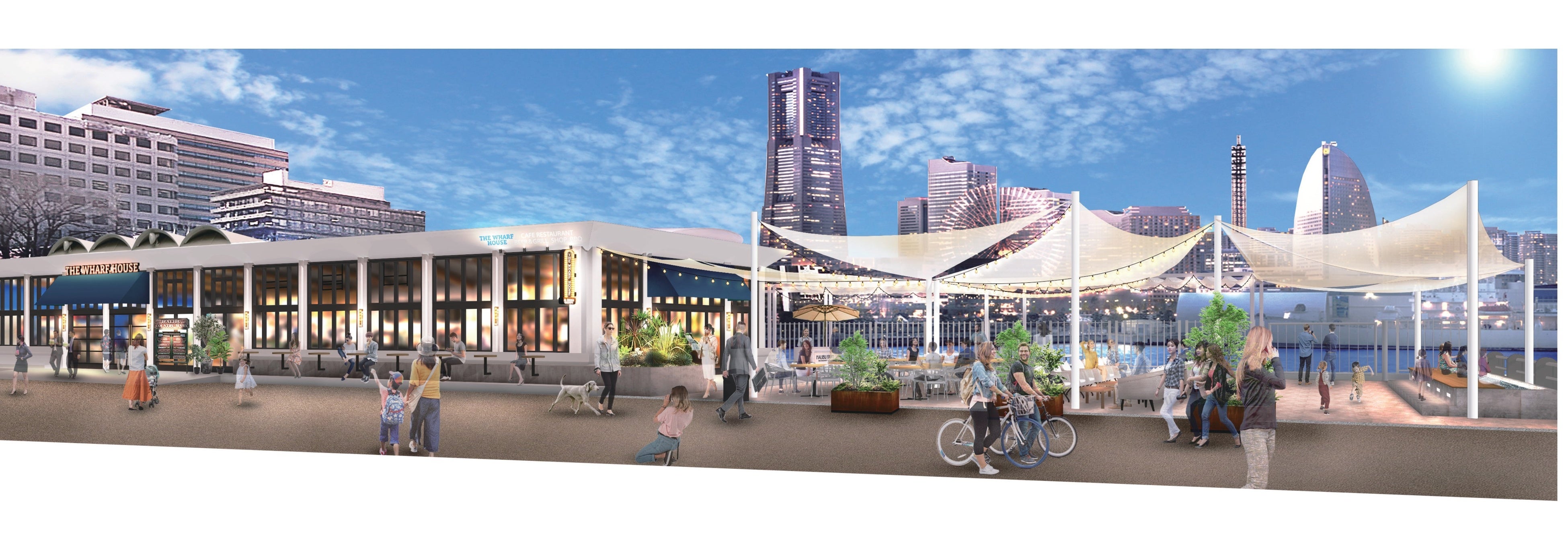 施設名の「波止場(=Wharf )」には、山下公園レストハウスが、みなとみらいエリアと元町中華街エリアとの間を行き交う 大勢の人々を受け止める場所として 、周辺エリアと一体的な魅力を発信していきたいという想いが込められています。
