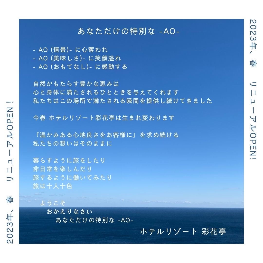 鳥羽旅館事業協同組合(三重県鳥羽市、理事長:迫間優子)加盟のホテルリゾート彩花亭(三重県鳥羽市安楽島町、 代表取締役:柴田耕司)は、4月22日(予定)にリニューアルオープンいたします。