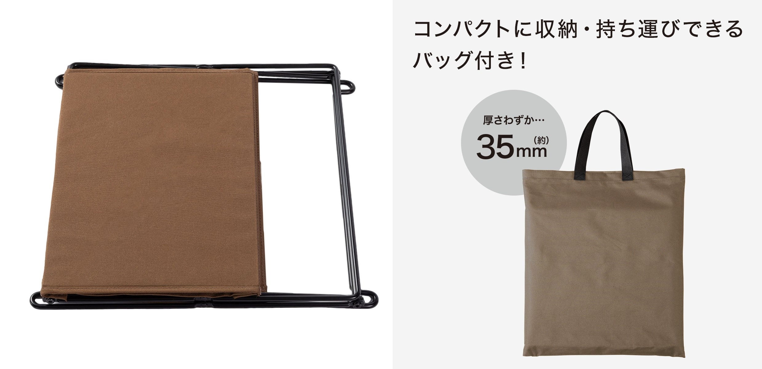④たたむと厚みわずか3.5cmで、移動も収納も手軽にできます。持ち運びに便利な収納バッグ付きです。