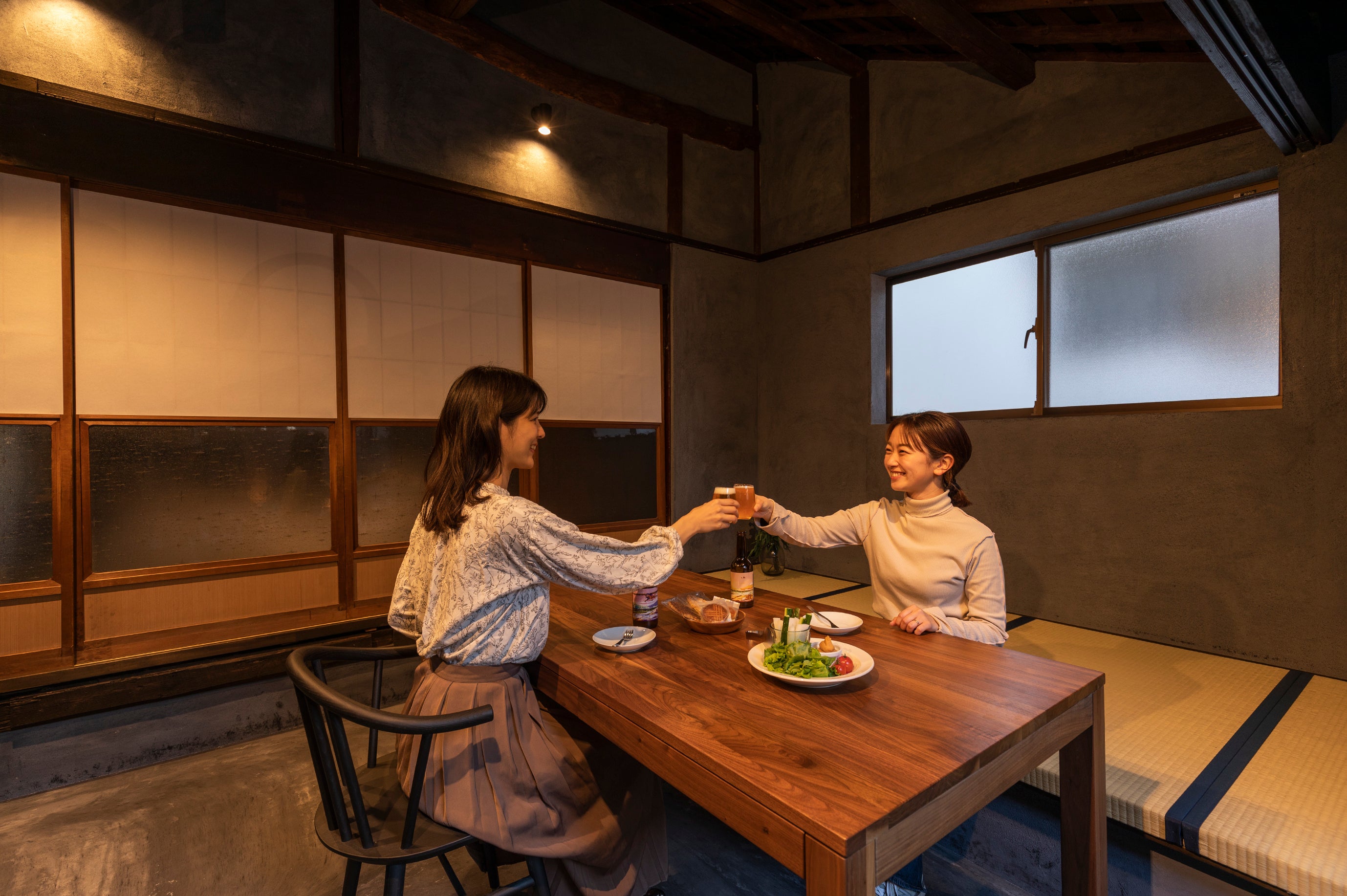 町家の造りは残したまま、歴史的な古民家とモダンが融合した空間で非日常的な時間を味わっていただけます。