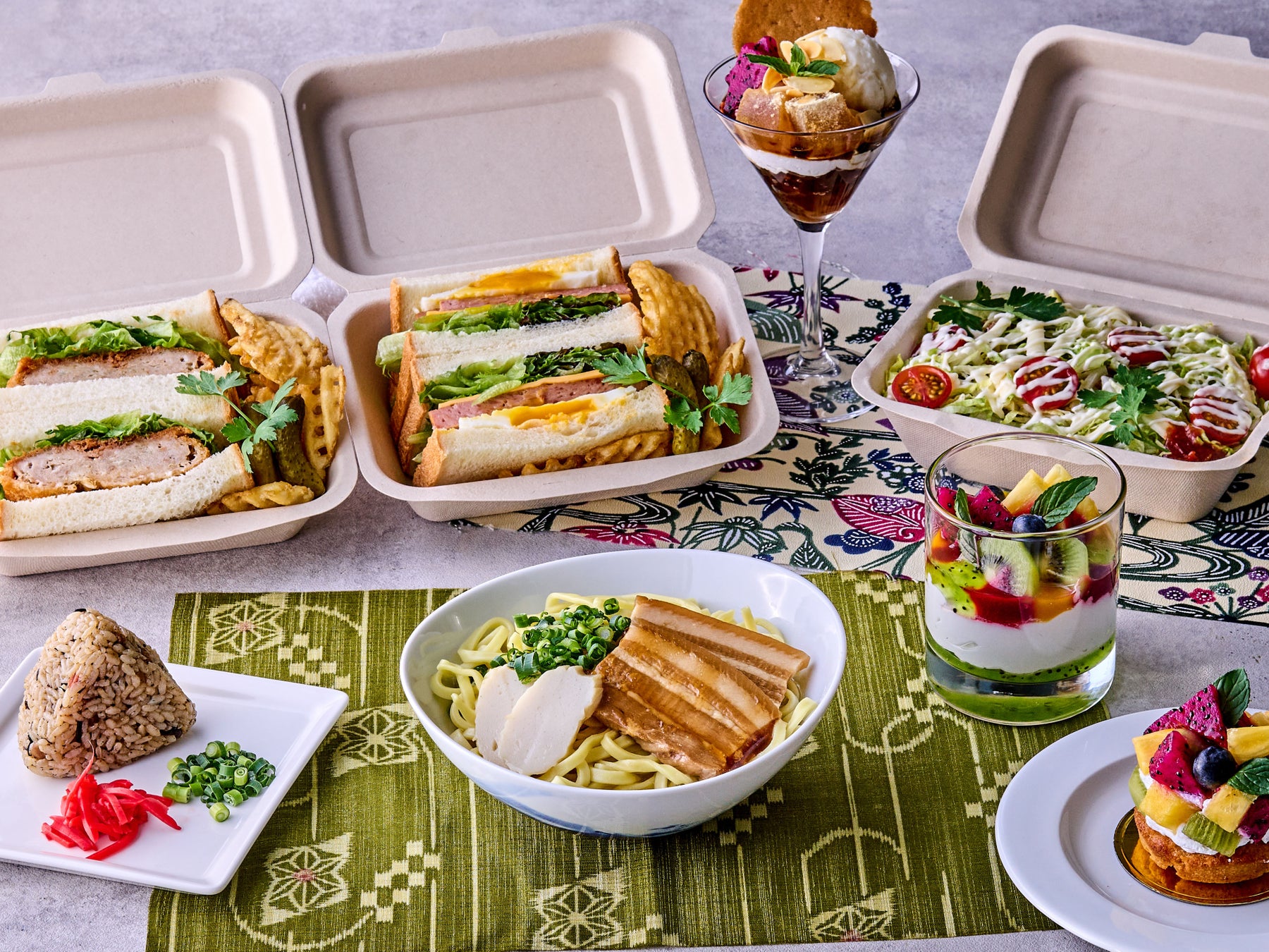 お食事はラウンジでお召し上がりいただけるほか、テイクアウトも可能です。ホテルに隣接する公園でピクニック気分もお楽しみいただけます。
