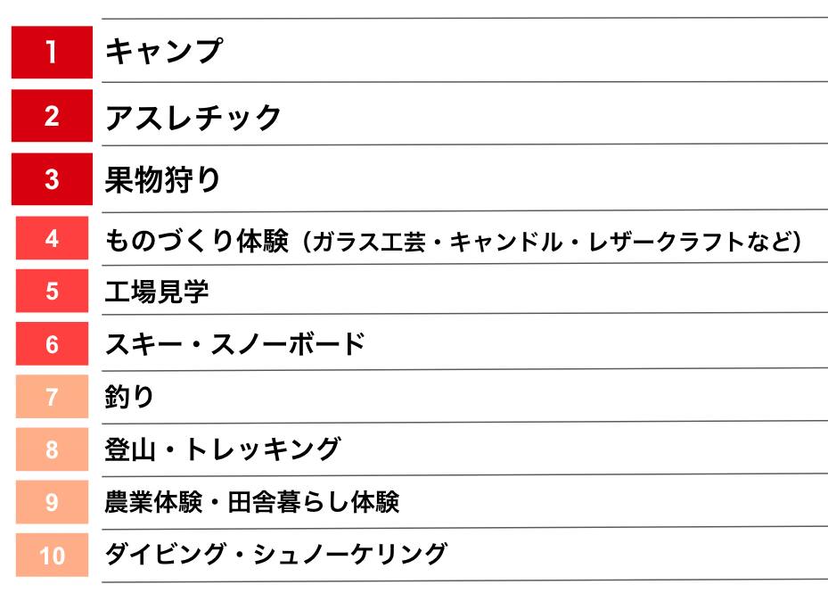 1位「キャンプ」2位「アスレチック」3位「果物狩り」