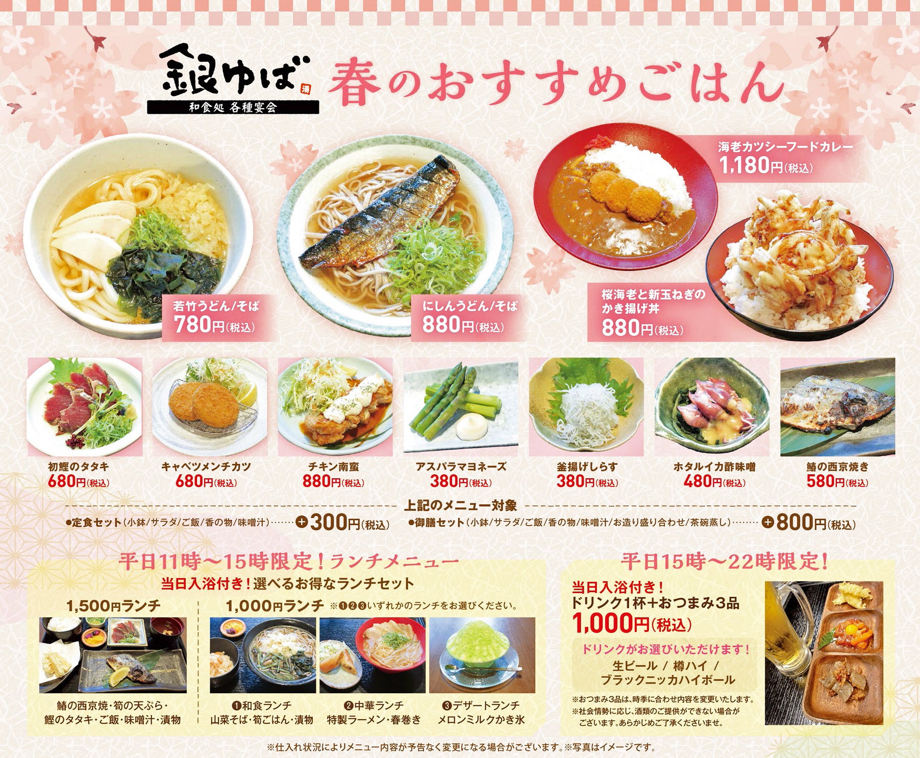 湯上がりに春のおすすめごはんでゆったりと、春の気分をお楽しみください。