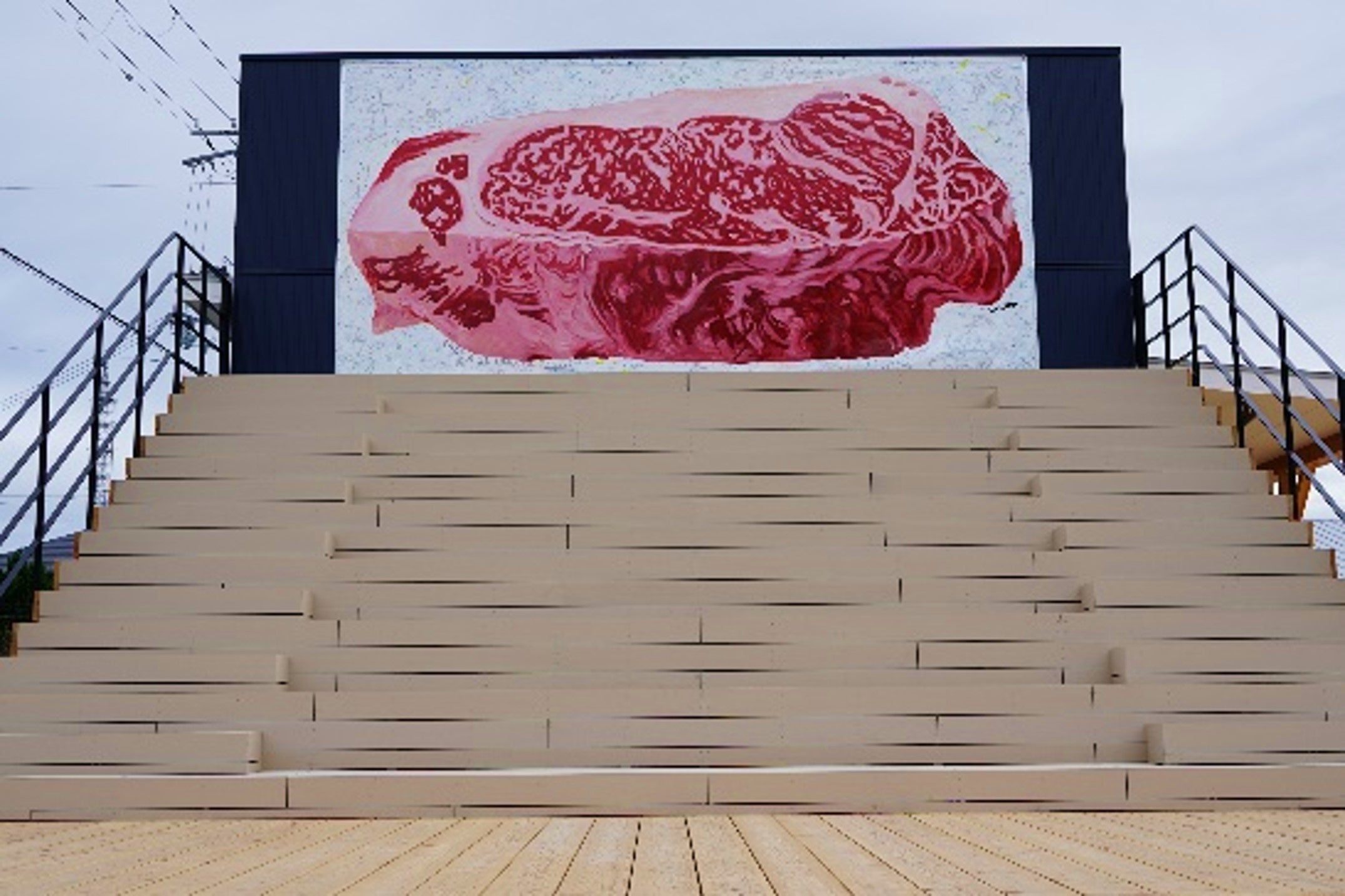 『waSTEP AWAJISHIMA』には、淡路島産フルーツを用いたケーキやパフェを楽しめるスイーツカフェ、2022年に金賞受賞したカレーパンが人気のベーカリー、ミシュラン1つ星のシェフが監修するパスタ店の他、淡路島産の新鮮な野菜や特産品を購入できる専門店や、ブランド肉の”淡路ビーフ”を取り扱う精肉店の5つがラインナップ。また、当施設のシンボルとなる淡路牛サーロインのウォールアートは、夫婦イラストユニットのはらぺこめがね氏が制作。
