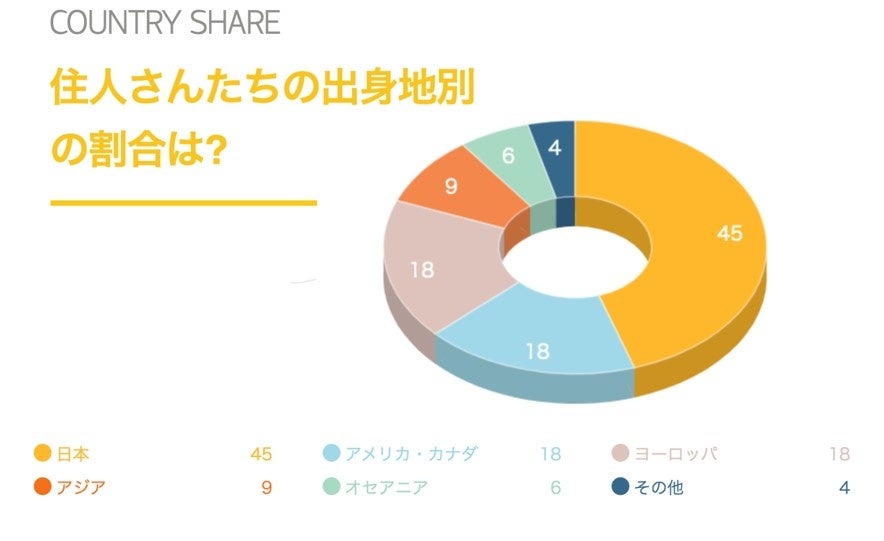 ※過去17周年間の首都圏・関西の合計35軒のシェアハウス、延べ4000名以上が入居が滞在したデータを元に算出。