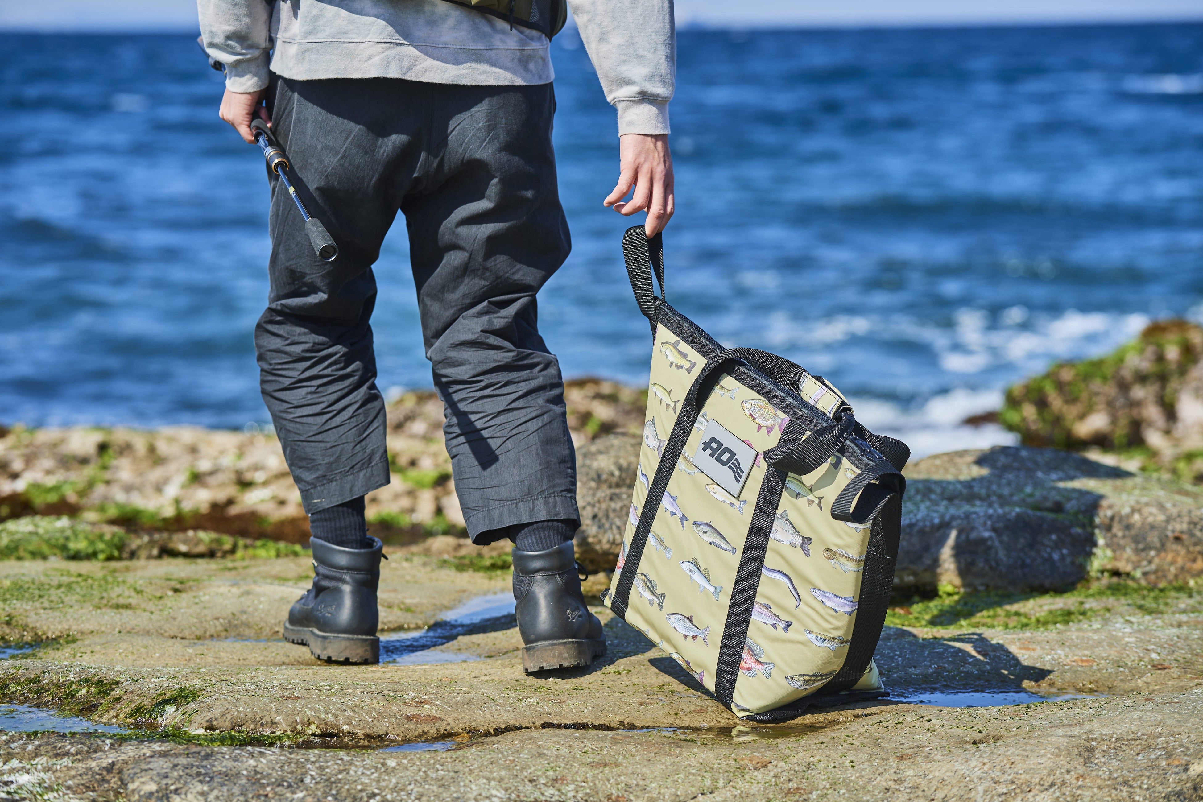 魚の運搬を容易にしたモデル。トート型にすることで肩掛けがしやすく、足場の悪い場所でも安心して持ち運びすることができます。