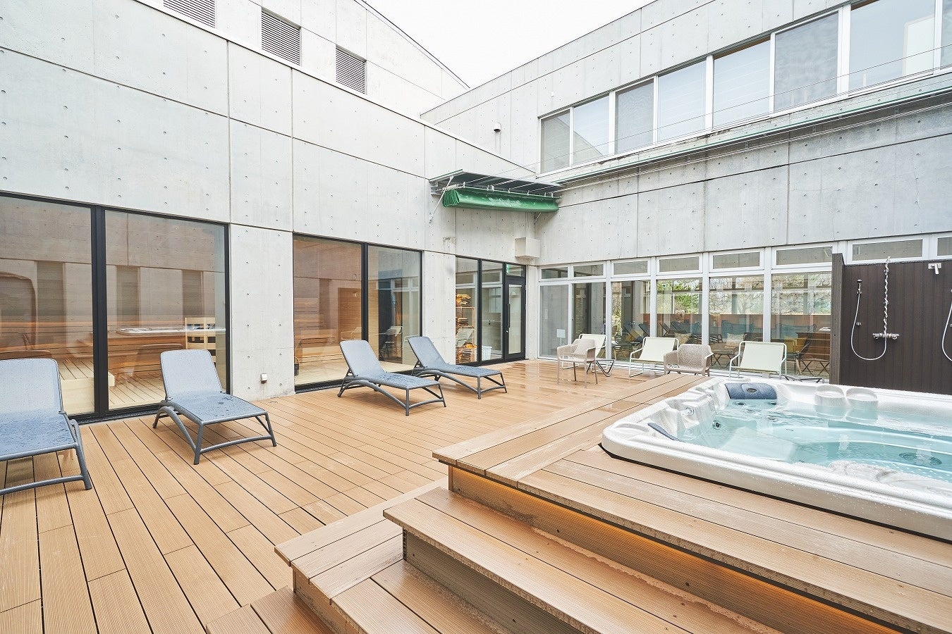 おふろcafé yusaのサウナガーデンは、収容人数30人以上、男女で一緒に楽しむことができる山形最大級の大型サウナ室です。ストーブはドイツから海を渡ってきたサウナストーブ EOS Zeus/Zeus L を採用。サウナストーンに水をかけて水蒸気を発生させて発汗を促進させる、セルフロウリュもお楽しみいただけます。