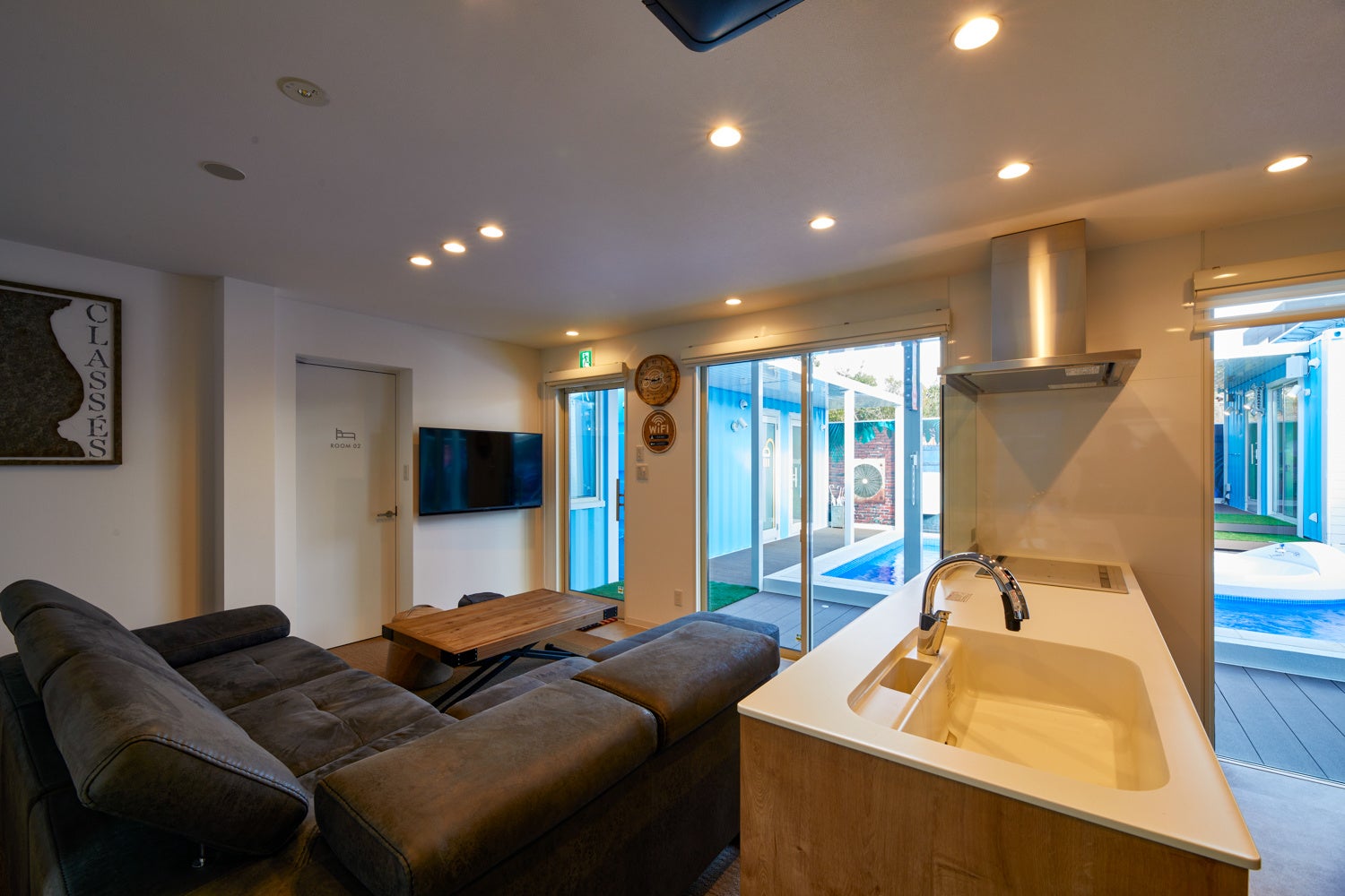 ファミリー、グループで別荘感覚に気兼ねなくご滞在いただける最大8名利用可能な空間となっております。