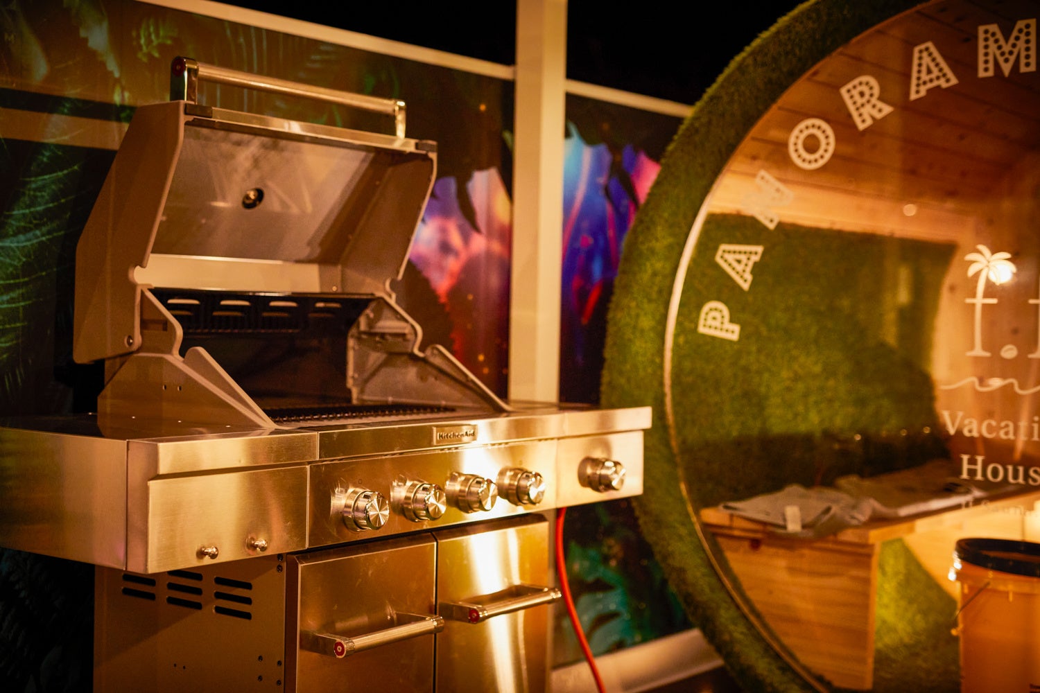 BBQグリルはガス式を採用しており、ボタン1つで着火でき、どなたでも簡単にお使いいただけます。