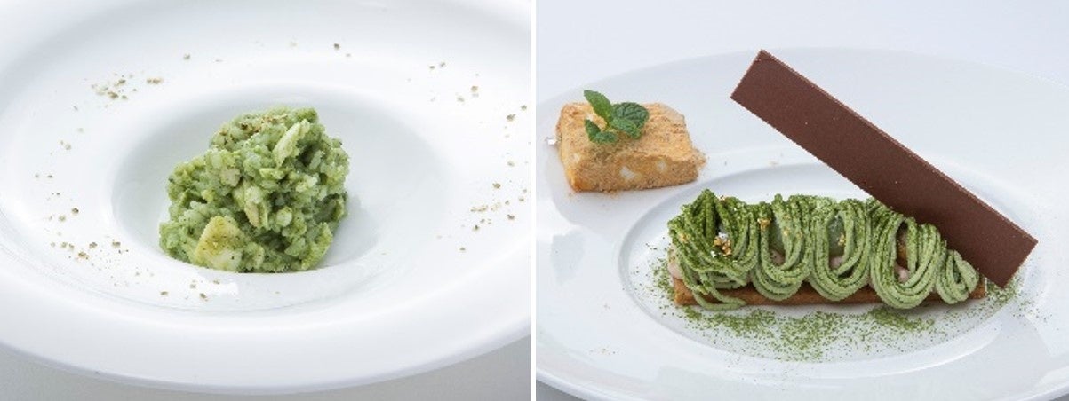 落合務シェフ監修のイタリアンレストラン「Ristorante ARCO」では、「新緑園」の緑茶を使ったリゾットやモンブランをご提供します。