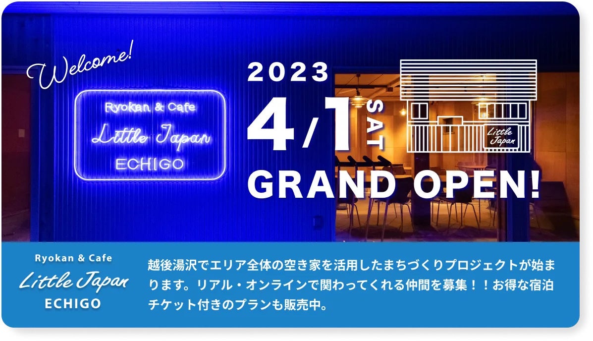 株式会社Little Japan(本社:東京都台東区 代表取締役:柚木理雄)は、2023年4月1日、新潟県南魚沼郡湯沢町に、新たな旅館・まちづくり拠点「Little Japan ECHIGO」をグランドオープンします。
