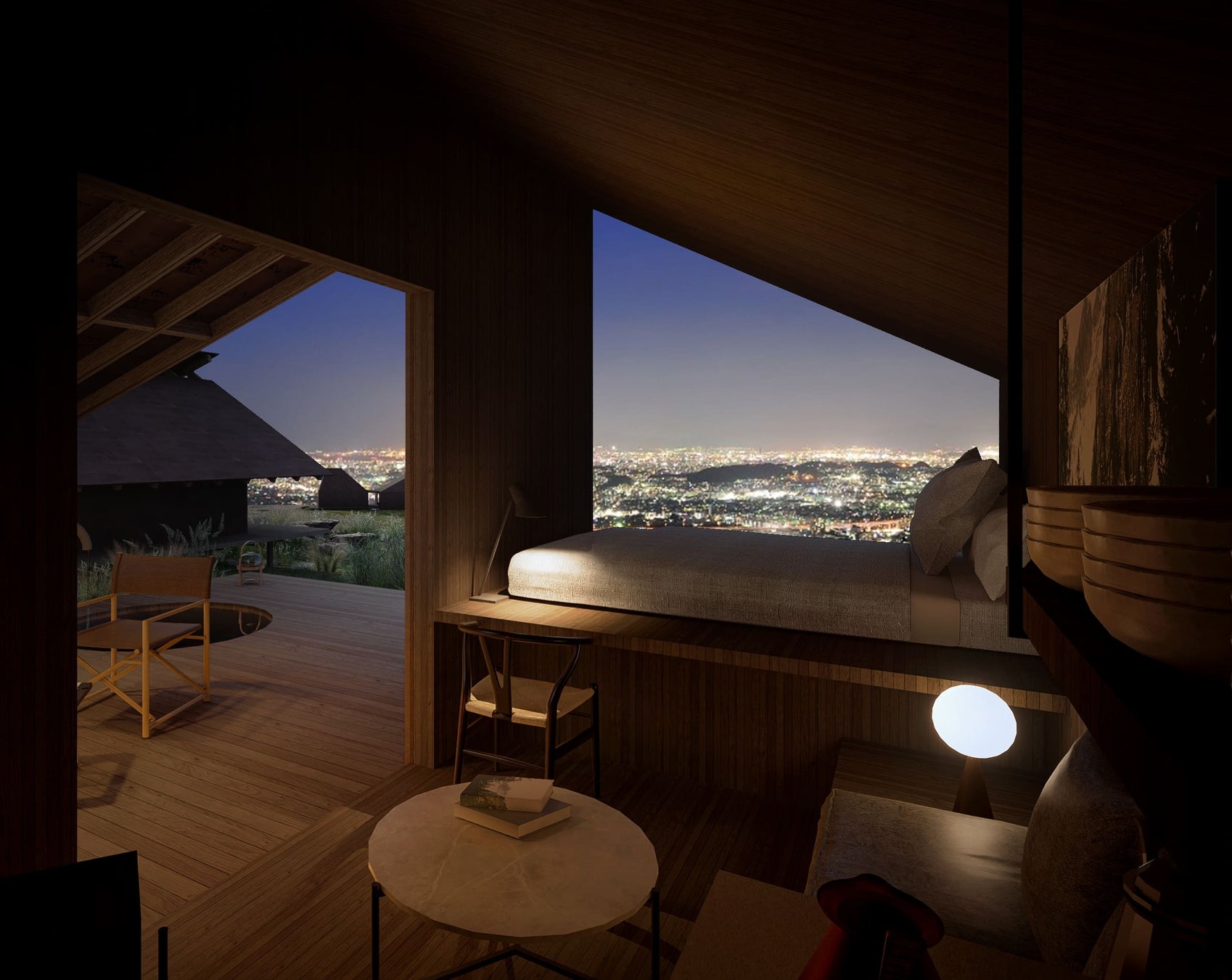 眼下に福岡の街並みと夜景が広がるエリアに、ヴィラ(2棟)・コテージ(5棟)・テント(10棟)の3タイプの宿泊棟を設け、自然の中での贅沢で豊かな極上の宿泊体験ができます。各タイプとも室内と外がシームレスになったリビング空間で自然の風やアウトドアの心地よさを感じながらゆっくりと滞在していただけます。ヴィラとコテージには各部屋に専用のサウナ・水風呂も設置し、開放的なアウトドア空間で景色を眺めながら心も身体も整えることができます。共用の焚火ラウンジでは、夜景と星空を眺め焚火を囲みながらお酒を楽しんでいただき、自然の中にいる非日常空間をお楽しみください。設計デザインは、国内、海外で斬新なデザインでさまざまなプロジェクトを手掛ける建築家・谷尻誠氏。油山の自然や景観、環境に溶け込むデザインと、自然を満喫でき、唯一無二の贅沢なアウトドア体験を楽しめる宿泊施設です。