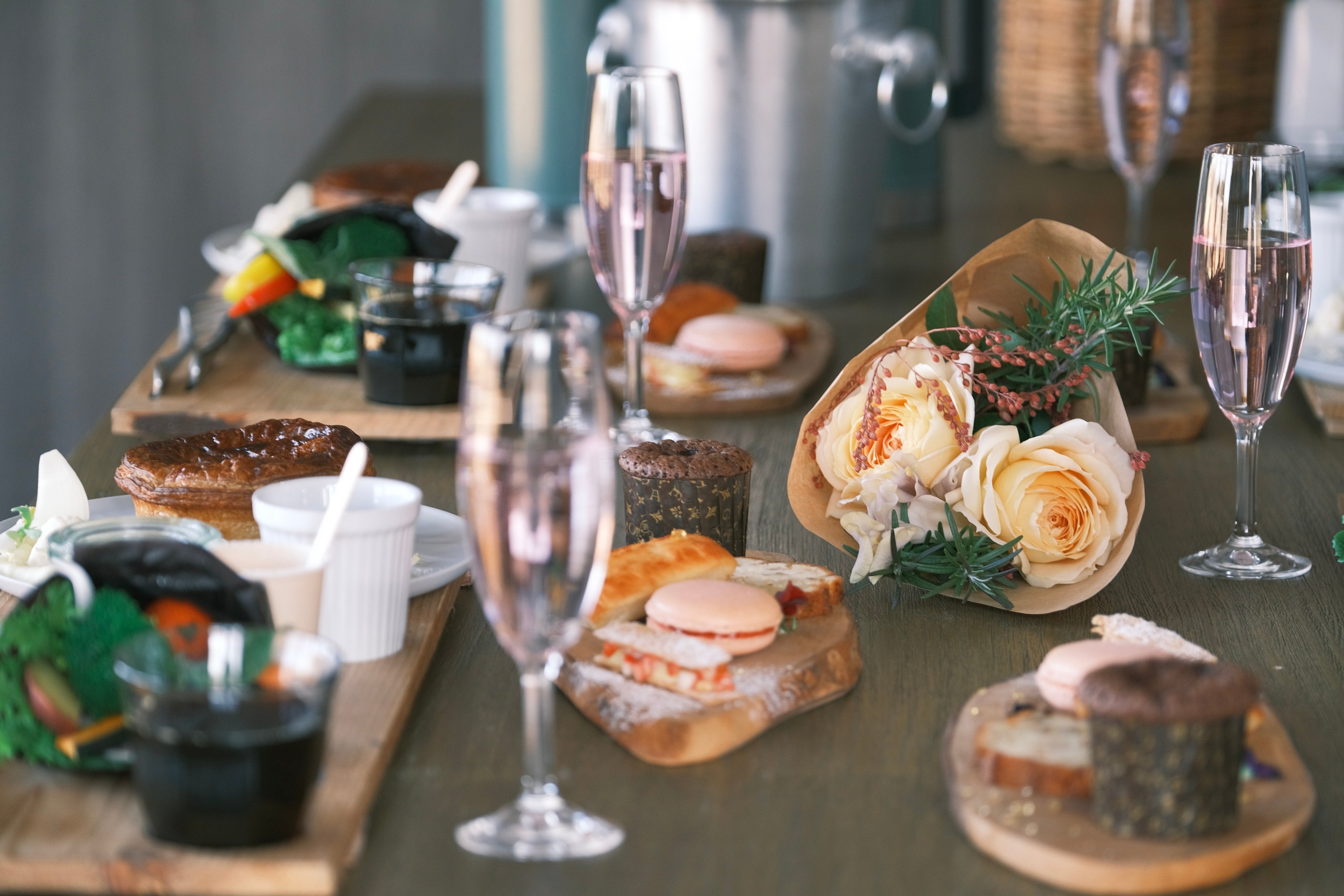レストランの離れにあるプライベートな空間で、大切な人と特別な時間を過ごせるランチプランが期間限定で新登場。3種類の季節のメインから選べるランチプレート[束]に、ウェルカムドリンクのバラのサイダーと特製デザートプレート、さらにはお持ち帰りできるミニブーケが付いて、お祝いシーンにもぴったり!豊かな自然に囲まれた空間で、新たな出会いと出発を彩るリラックスしたひと時をお過ごしください。