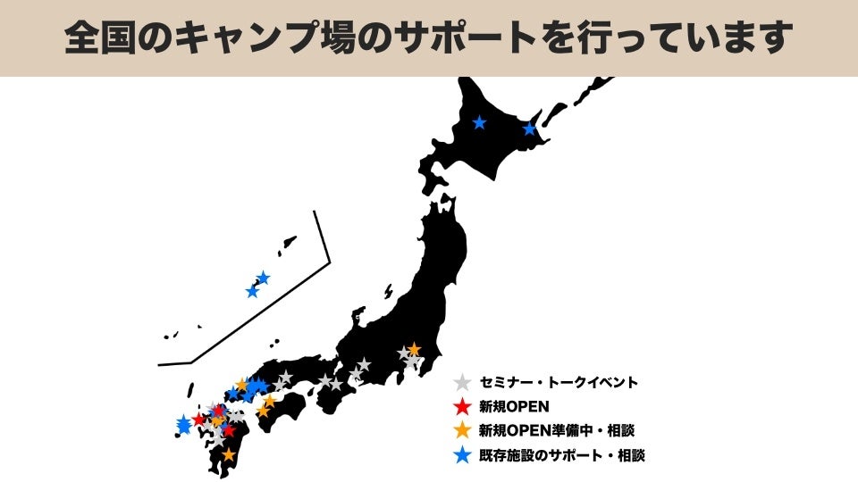 日本全国のキャンプ場のサポートをしています
