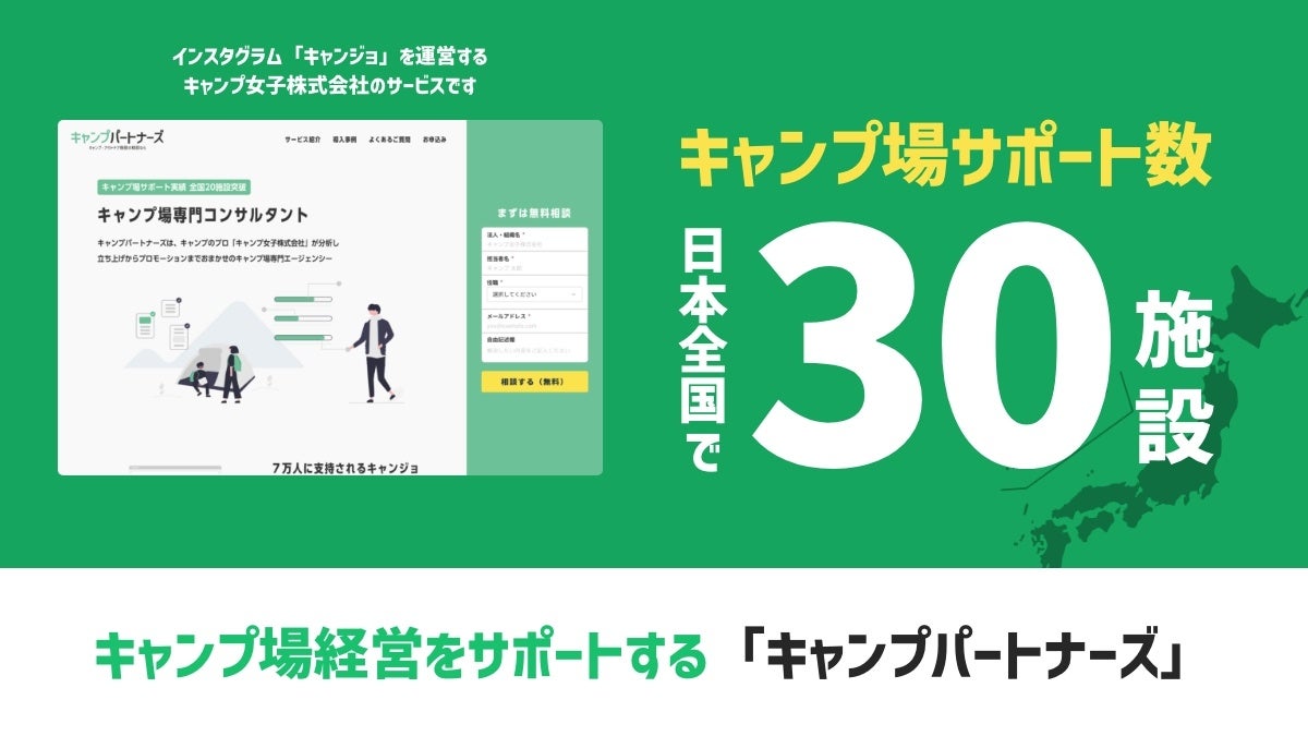 キャンプ女子株式会社(本社:福岡市中央区 代表:橋本華恋)は、キャンプ場向けコンサルティング事業「キャンプパートナーズ」のサポートキャンプ場が全国30箇所を達成したことをお知らせいたします。これにより、同社はさらなるキャンプ文化の発展と地域活性化に貢献することを目指します。
