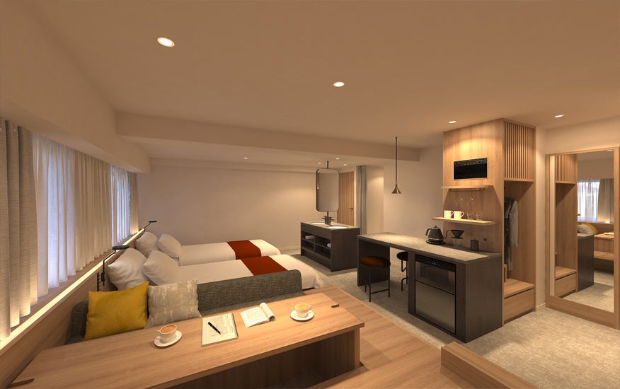 開業にあたって、広々とした客室空間を実現するため、2室を1室に統合するなどの改装を実施しました。そのうち、高層階には2室のプレミアルームをご用意しています。さらに、tottette(トッテッテ)などのサービスを提供のため、1Fロビーエリアを改装いたしました。 予約受付は2023年3月31日予定です。「the b hotels」が大阪エリアに出店するのは今回が2度目となります。